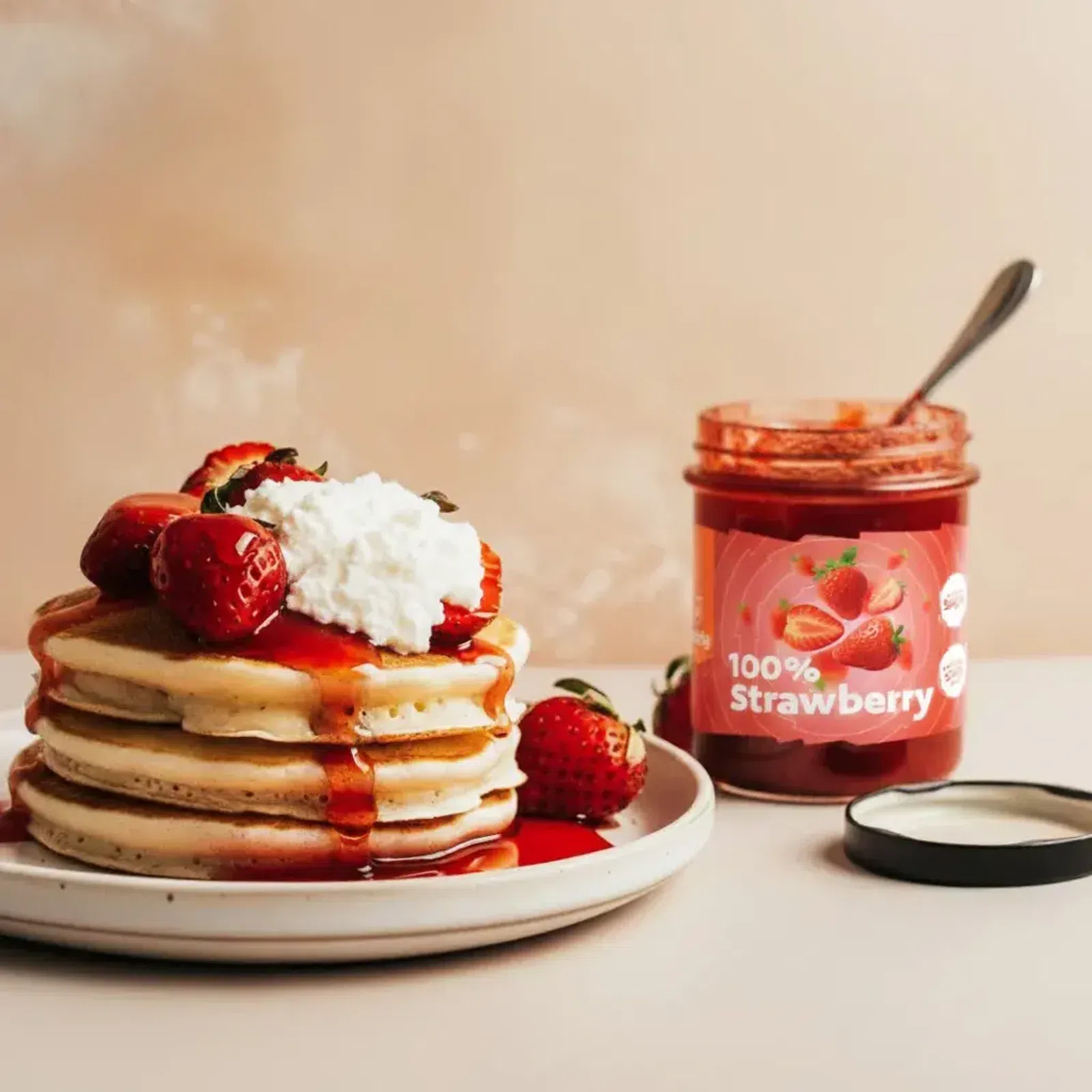 | Składniki: | truskawki (99 % m/m), substancja żelująca: pektyny; kwas cytrynowy. |