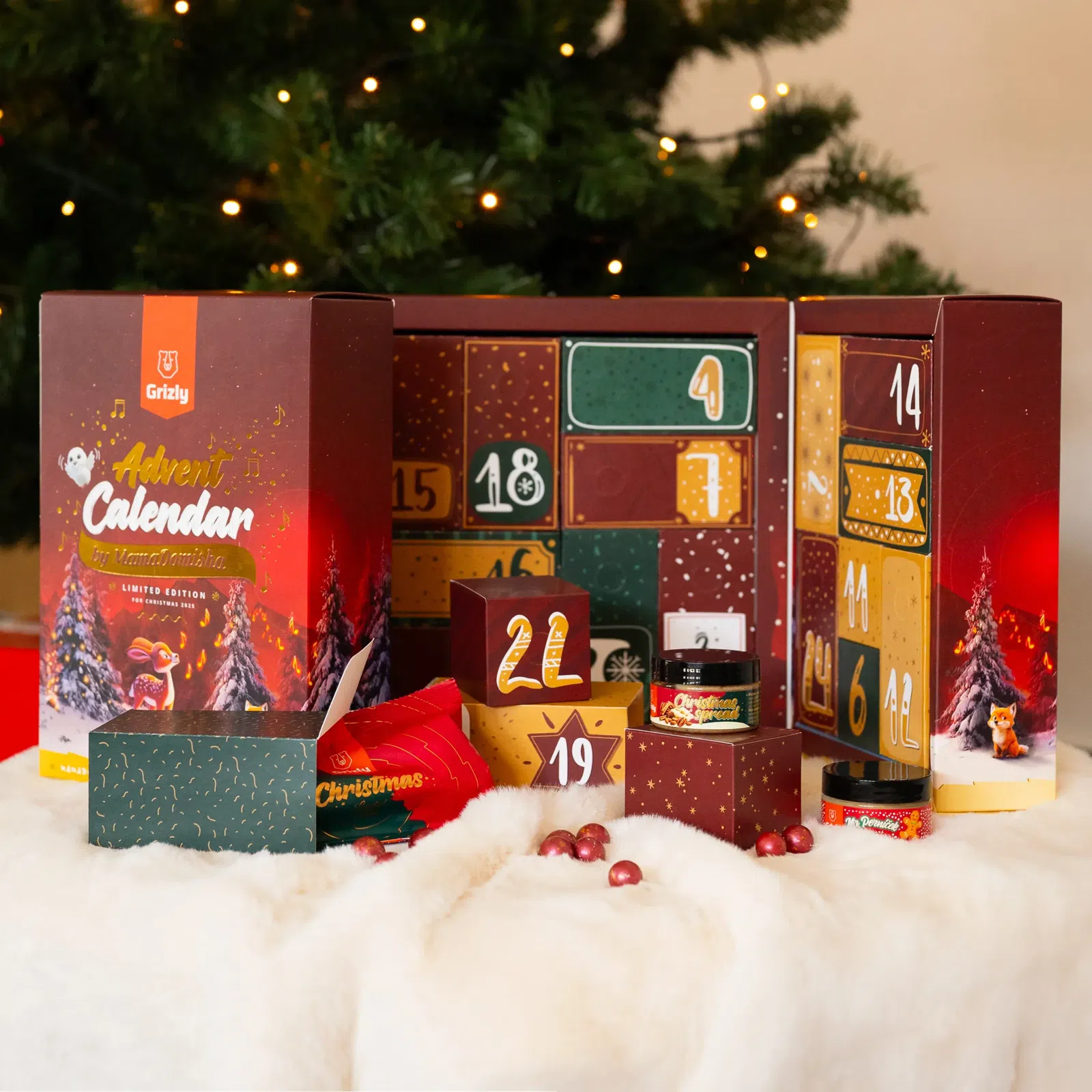 Doczekaliście się! Legendarne misiowe kalendarze adwentowe są już dostępne. Lepsze, piękniejsze, smaczniejsze, bardziej kolorowe, bardziej radosne i jak zawsze wypełnione po brzegi smakołykami od Grizly i MamaDomisha. Wraz z nim, misiem Grizly i zwierzątkami z zaczarowanego lasu, nastroicie się na świąteczną nutę. *Na ten produkt nie obowiązują żadne kody rabatowe.