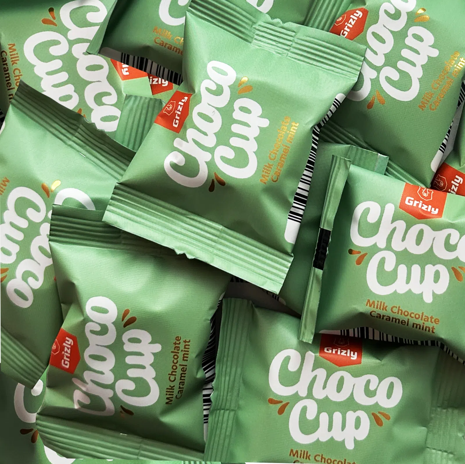 GRIZLY Choco Cups mleczna czekolada z karmelem & miętą, 120 g