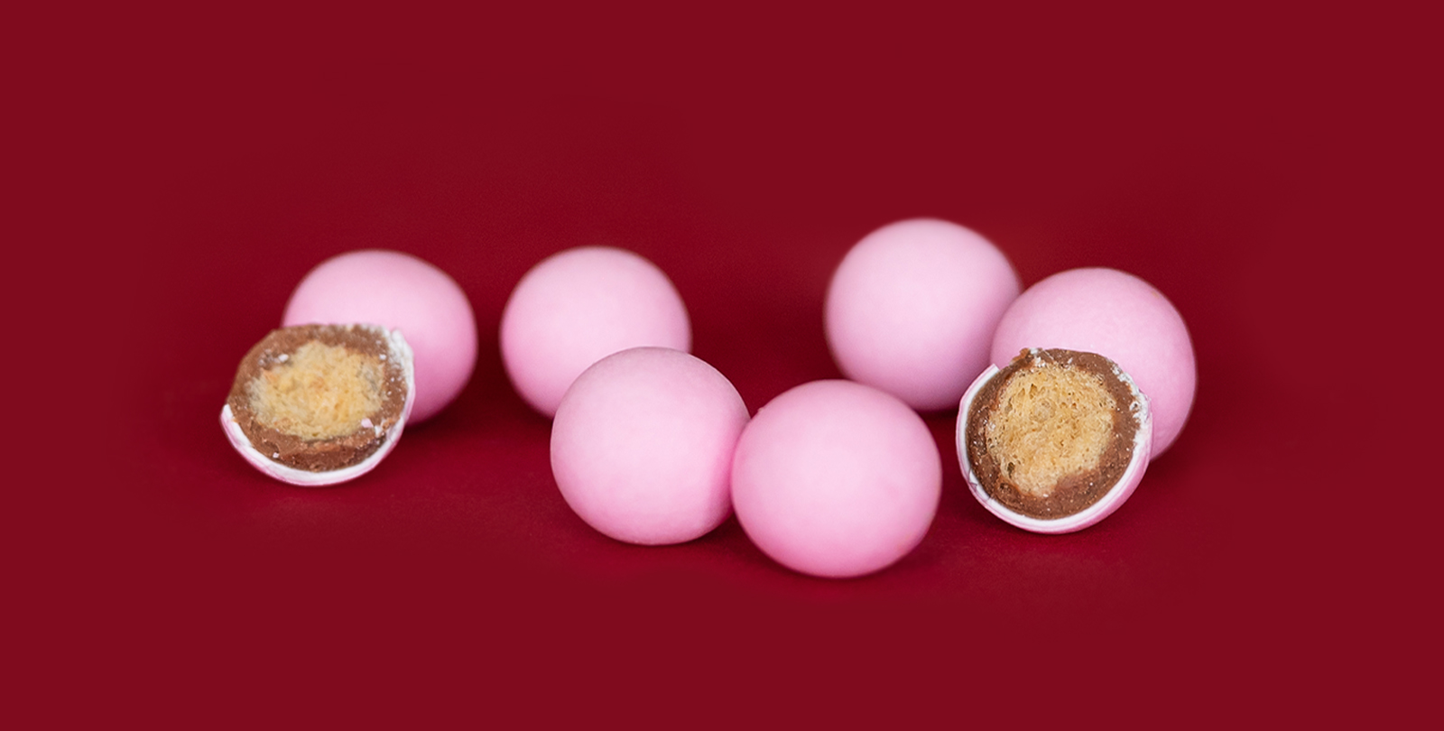 Skład: | krem czekoladowy 48 % (cukier, uwodorniony olej palmowy, suszone pełnotłuste mleko, kakao, suszona serwatka, emulgatory: lecytyna sojowa, tristearynian sorbitolu; aromat wanilinowy), cukier 40 %, chrupiące zbożowe wnętrze 11 % (mąka pszenna, pełnoziarnista mąka pszenna, cukier, gluten pszeniczny, słodowa mąka pszenna, sól, środek spulchniający: wodorowęglan sodu), aromat, skrobia ryżowa, stabilizatory: guma arabska, estry sacharozy kwasów tłuszczowych; barwniki: karmine; substancje polerujące: wosk karnauba. |