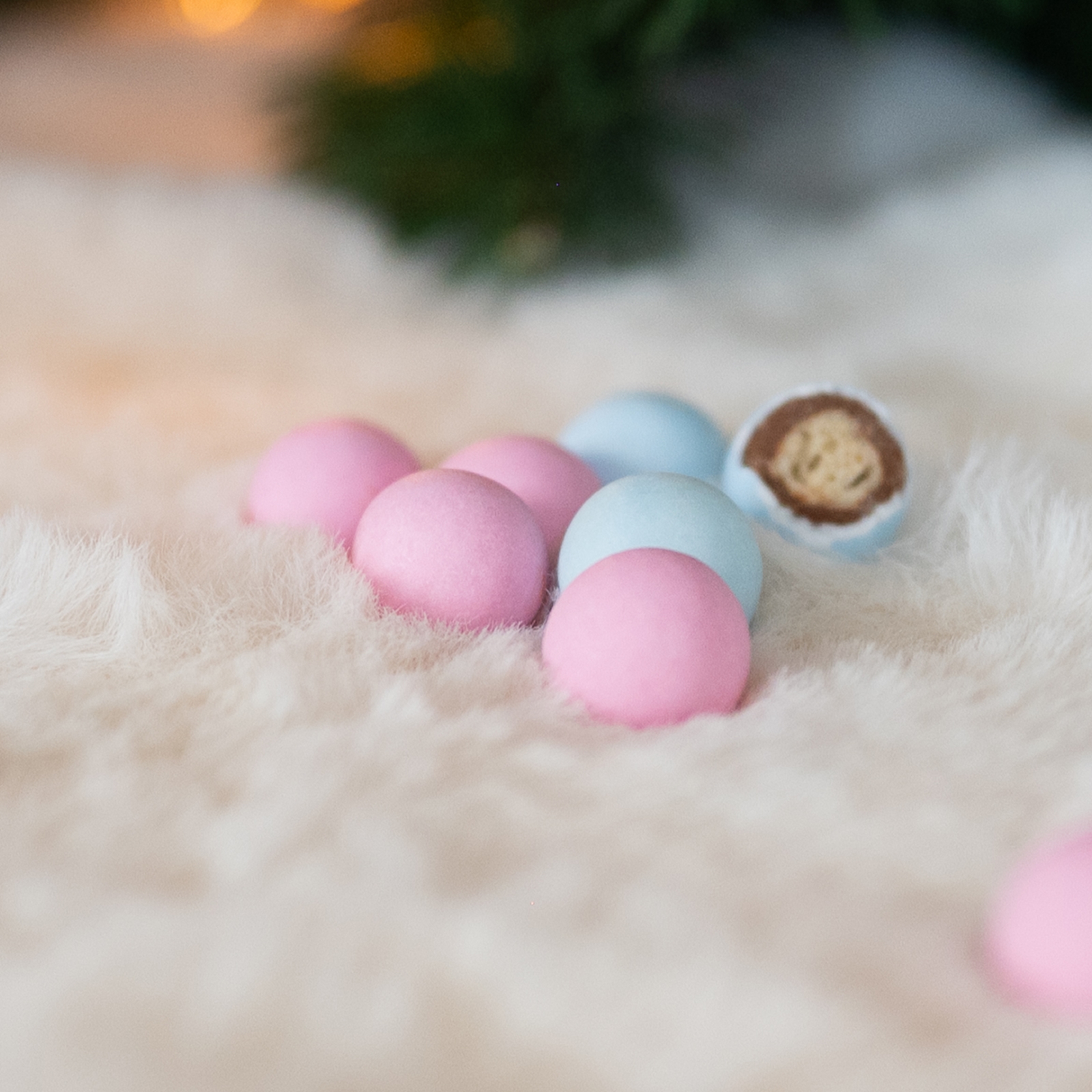 Oczekiwanie na śnieg to evergreen każdej zimy w wielu polskich domach. Jakie rozczarowanie, gdy zamiast białego pokrycia jak z bajek Ladów, patrzycie z okna na błoto i mgłę. Jednak w tym roku nic takiego już wam nie grozi. Będziecie dobrze przygotowani, a wasz dom zapełni się pięknymi niebieskimi śnieżnymi kulkami, które wprowadzą niezrównaną atmosferę świąteczną. Co więcej, w odróżnieniu od prawdziwych kul śniegowych, te można bezpiecznie zjeść. Pod ich matową niebieską powłoką ukryta jest chrupka kulka w czekoladowym kremie. W ofercie nie są one samotne, jeśli lubicie zestawiać kolory, dodajcie do koszyka również różowe śnieżne kulki.