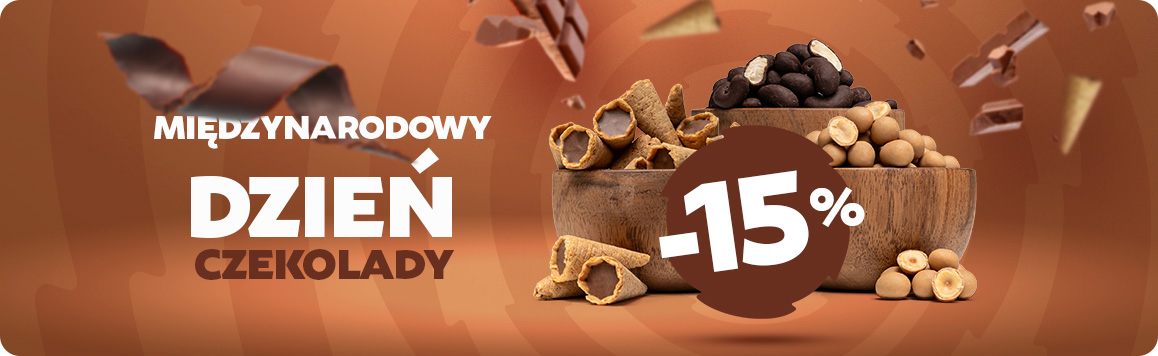 Czekoladowe pyszności z kategorii „Orzechy w czekoladzie” i „Czekolada” kupicie teraz z 15% rabatem, używając kodu rabatowego:
