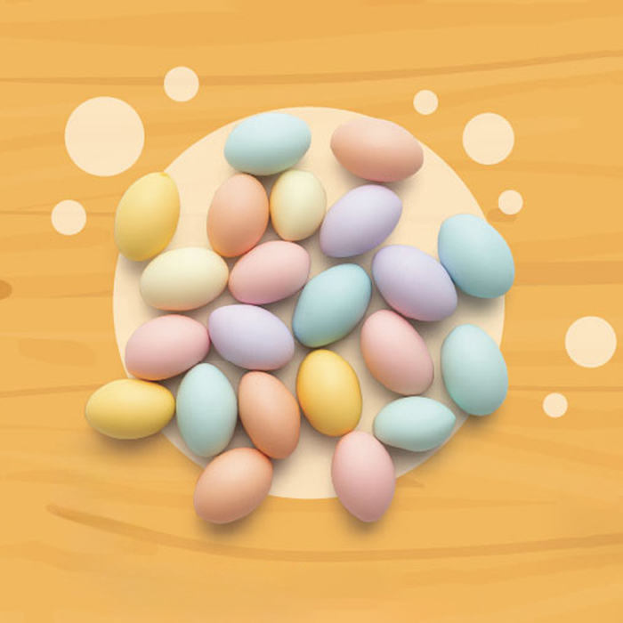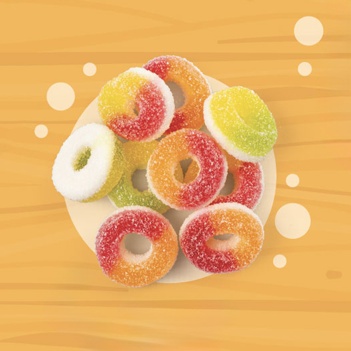 Mango Teddies – owocowe misie pełne smaku prawdziwego mango. Kwaśne, kolorowe żelki w kształcie kółek dodają orzeźwiającej kwaskowatości. A co to za Wielkanoc bez jajek? Dlatego nie zabrakło także chrupiących, kolorowych jajeczek.