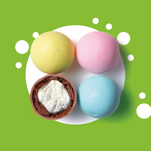 DRAŻETKI MARSHMALLOW. Marshmallow w kremie kakaowym i polewie cukrowej. Składniki: Krem kakaowy 48 % (cukier, utwardzony tłuszcz roślinny: olej palmowy z ziaren palmy; pełne mleko w proszku, kakao w proszku, serwatka mleczna w proszku, emulgatory: lecytyny sojowe, tristearynian sorbitolu; aromat wanilinowy), cukier 37 %, marshmallow 13 % (syrop glukozowo-fruktozowy, cukier, woda, żelatyna wieprzowa, dekstroza, skrobia kukurydziana, naturalny aromat waniliowy), stabilizatory: guma arabska, estry sacharozy z kwasami tłuszczowymi; aromat, barwniki: karminy, kurkumina, ekstrakt ze spiruliny; substancja glazurująca: wosk carnauba. Może zawierać śladowe ilości orzeszków ziemnych, orzechów i glutenu. Wartości odżywcze na 100 g: Wartość Energetyczna 2028 kJ/ 484 kcal; Tłuszcz 20,5 g, w tym kwasy tłuszczowe nasycone 19,2 g; Węglowodany 69 g, w tym cukry 66 g; Błonnik 2,9 g; Białko 4,1 g; Sól 0,05 g.