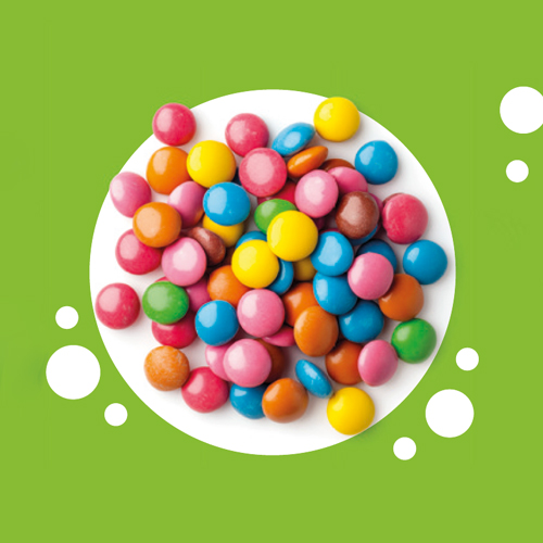 LENTILKY MINI. Draże. Składniki: cukier, tłuszcz kakaowy, pełne mleko w proszku, miazga kakaowa, serwatka w proszku (mleko), skrobia ryżowa, substancja zagęszczająca: guma arabska; emulgatory: lecytyny; syrop glukozowy, substancje glazurujące: wosk carnauba, wosk pszczeli, szelak; sól, barwniki: antocyjany, karoteny mieszane, kompleksy miedziowe chlorofilin, kurkumina, czerwień buraczana. Zawartość miazgi kakaowej w czekoladzie mlecznej min. 30 %. Może zawierać śladowe ilości orzeszków ziemnych i orzechów. Wartości odżywcze na 100 g: Wartość Energetyczna 1977 kJ/ 470 kcal; Tłuszcz 17 g, w tym kwasy tłuszczowe nasycone 9,8 g; Węglowodany 75 g, w tym cukry 72 g; Białko 3,2 g; Sól 0,19 g.