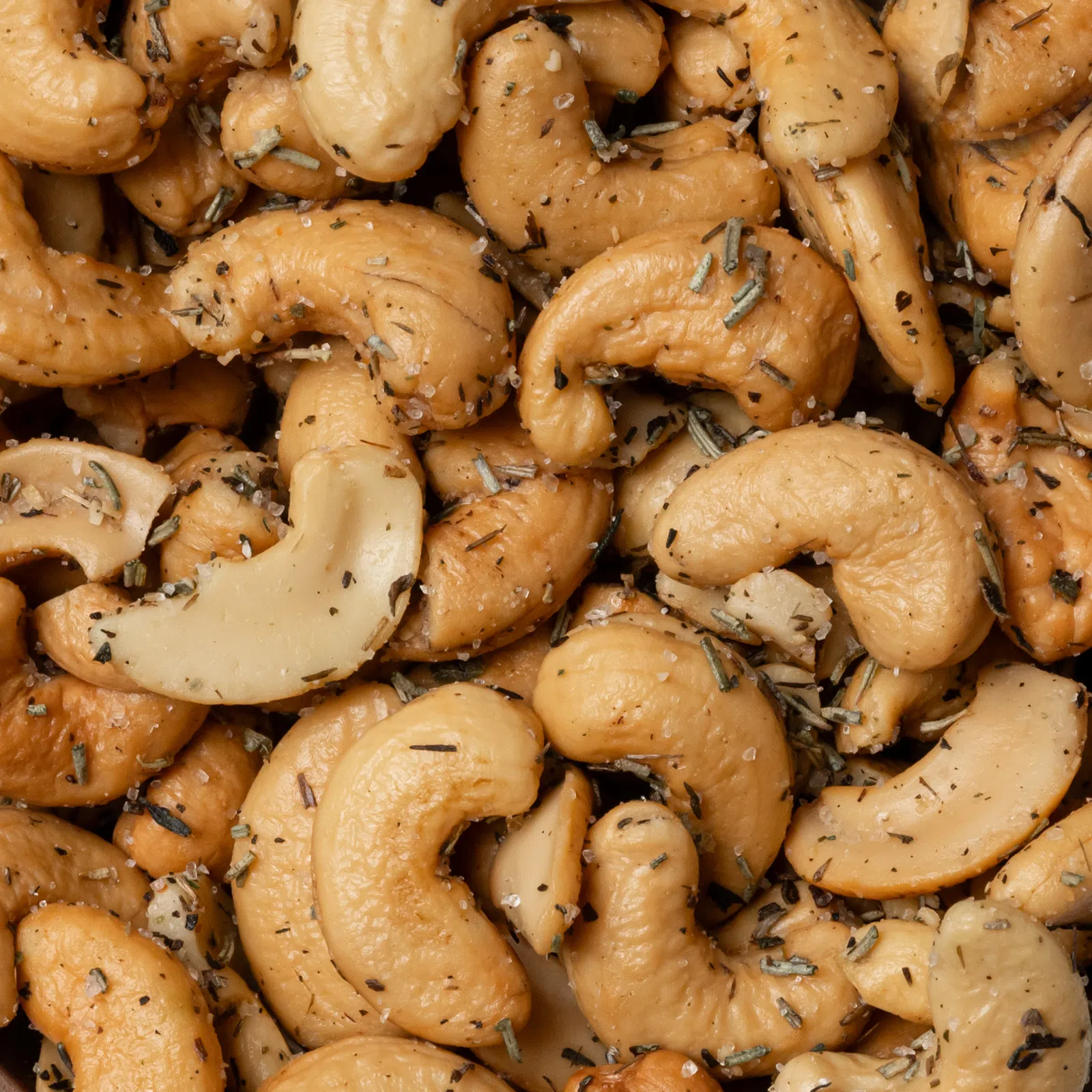 | Skład: | smażone ziarna orzechów nerkowca, olej słonecznikowy, sól, zioła 1,4 % (rozmaryn, szałwia, tymianek, bazylia, majeranek i oregano). |