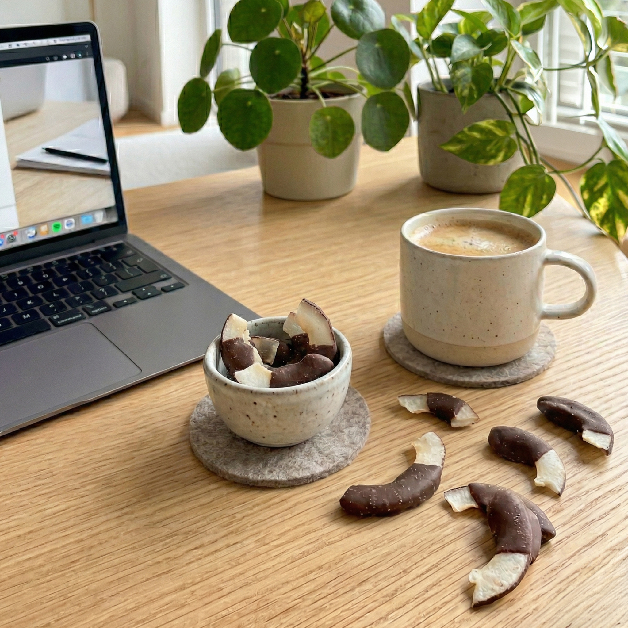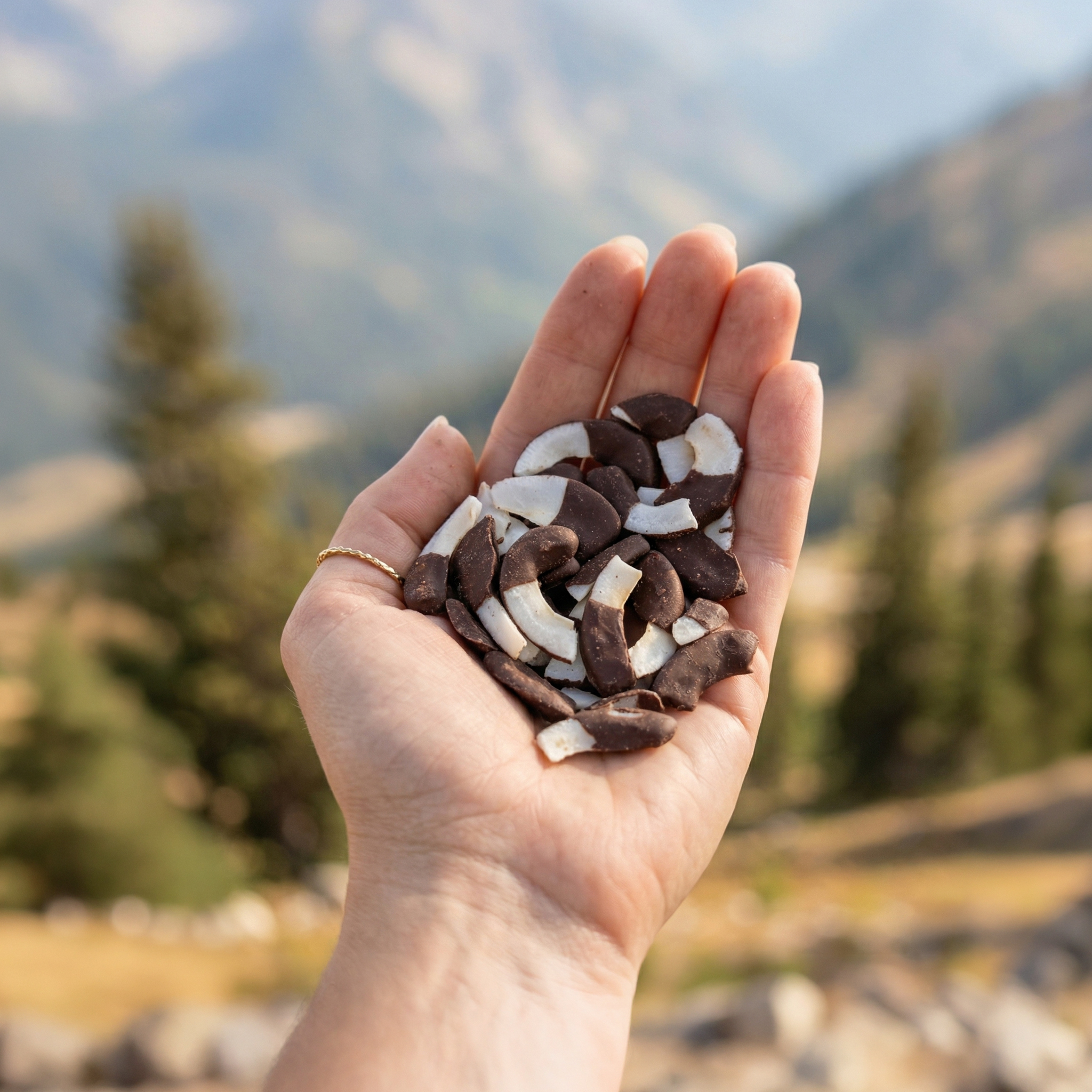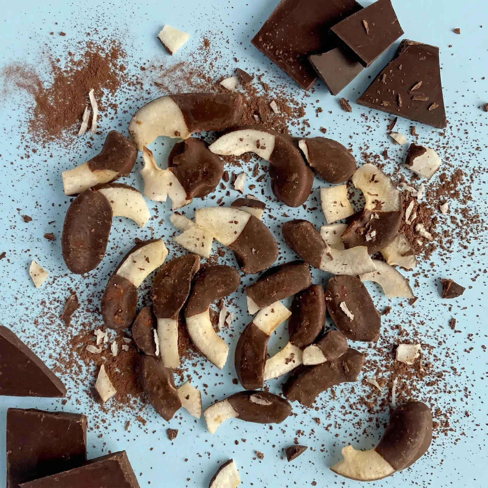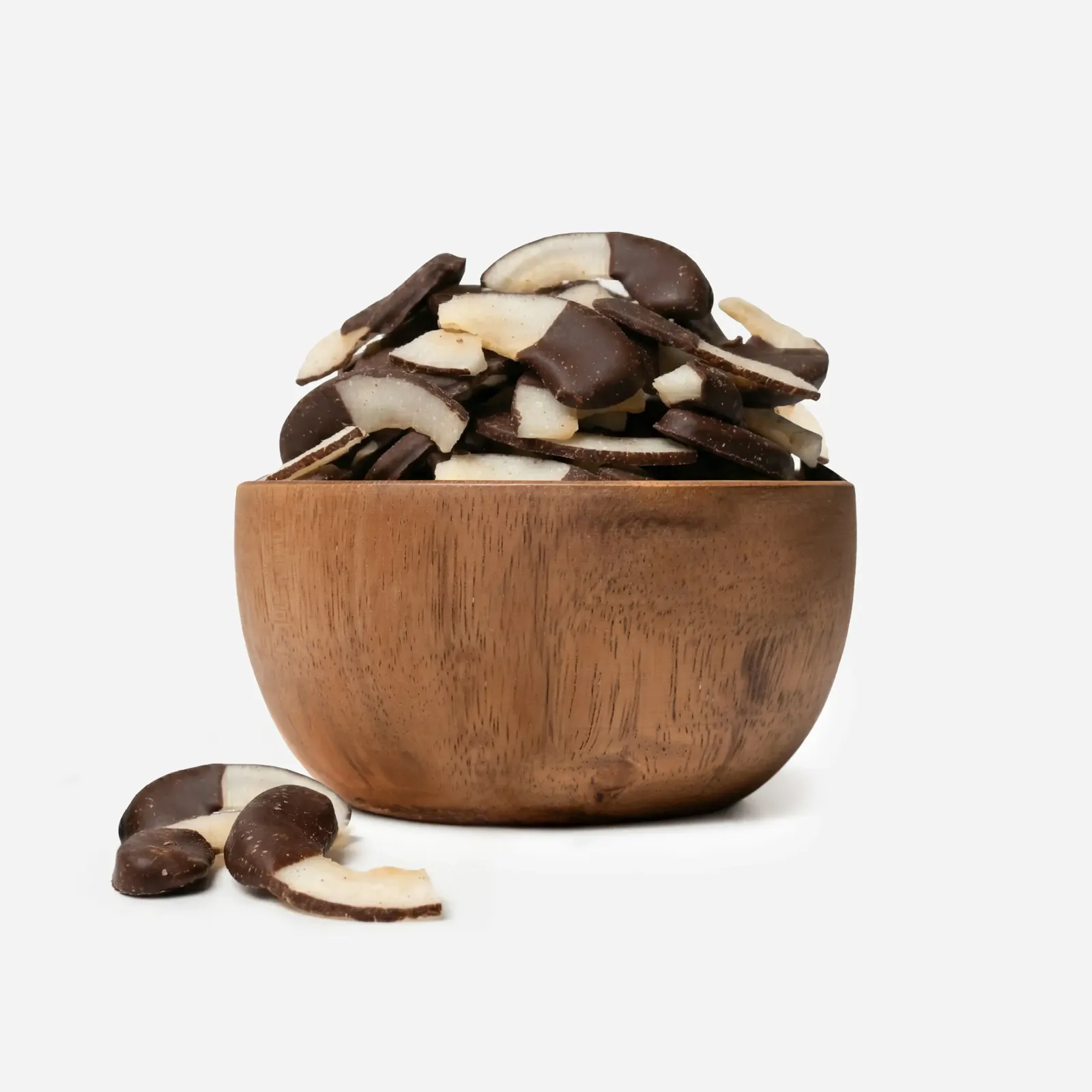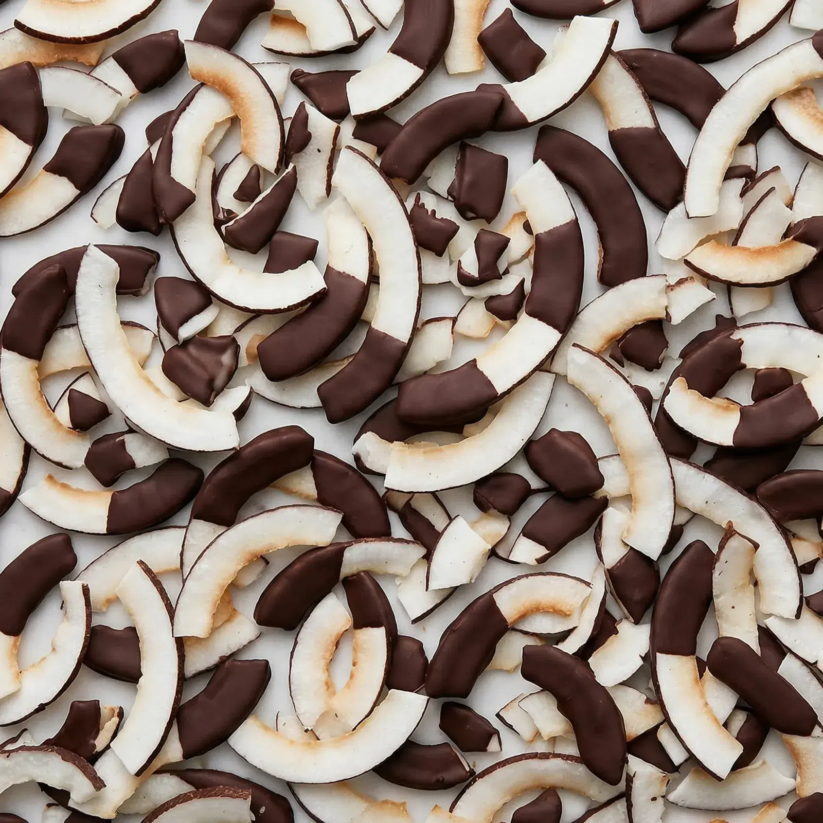 Chrupiące płatki kokosa w połowie zanurzone w wysokiej jakości gorzkiej czekoladzie bez oleju palmowego. Idealna przekąska lub jako dodatek do jogurtu czy owsianki dla dodatkowej chrupkości. Wypróbuj je także jako stylowy topping do deserów i lodów lub jako szybkie źródło energii w podróży.