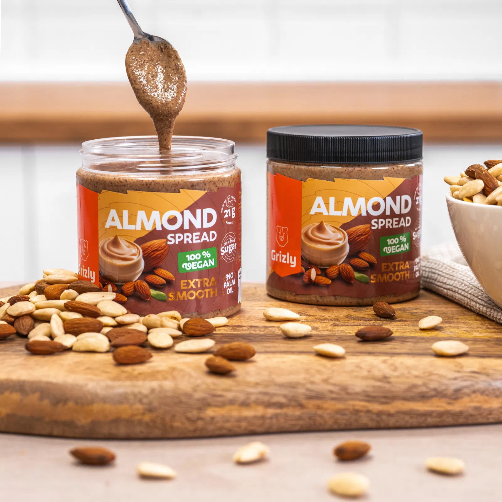 …produkujemy kremy orzechowe co tydzień w małych partiach? Dzięki temu możemy zagwarantować wyjątkową jakość każdego produktu. GRIZLY krem migdałowy spełnia wymagania dotyczące zdrowego masła migdałowego, ponieważ zawiera tylko migdały, bez dodatku cukrów, olejów czy konserwantów.