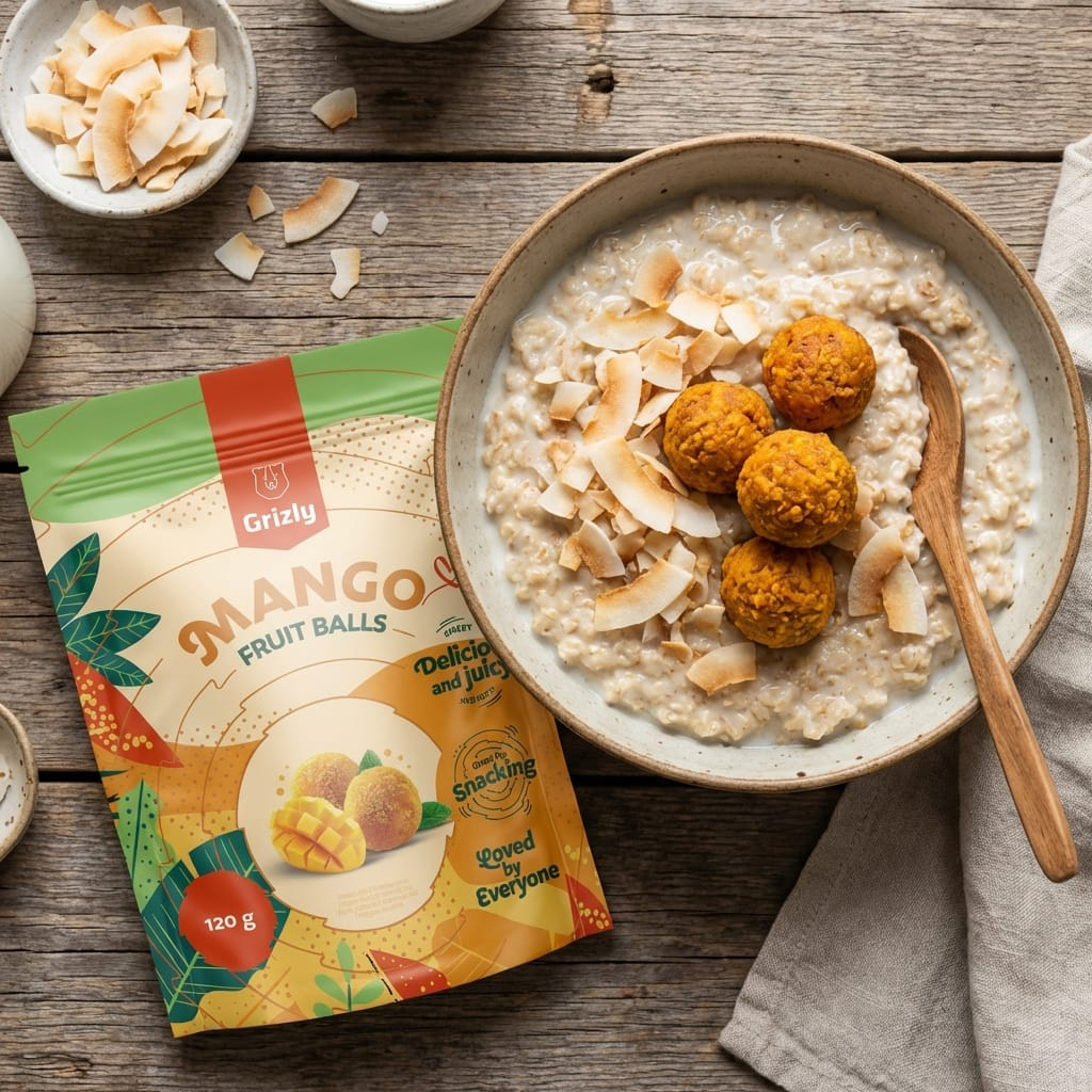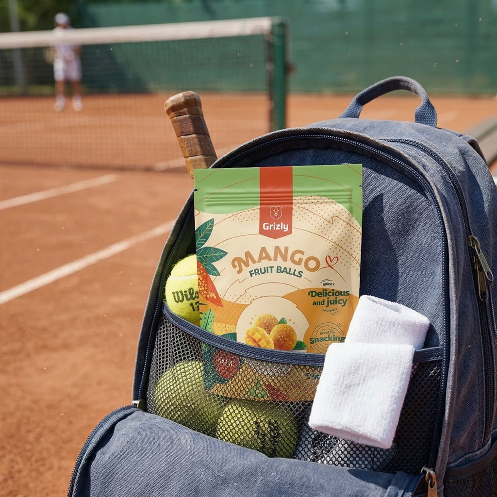 Kulki z delikatnie suszonego mango zachwycają naturalną słodyczą, miękką konsystencją i egzotycznym aromatem. Szybka energia na dzień w pracy, w szkole i w podróży.