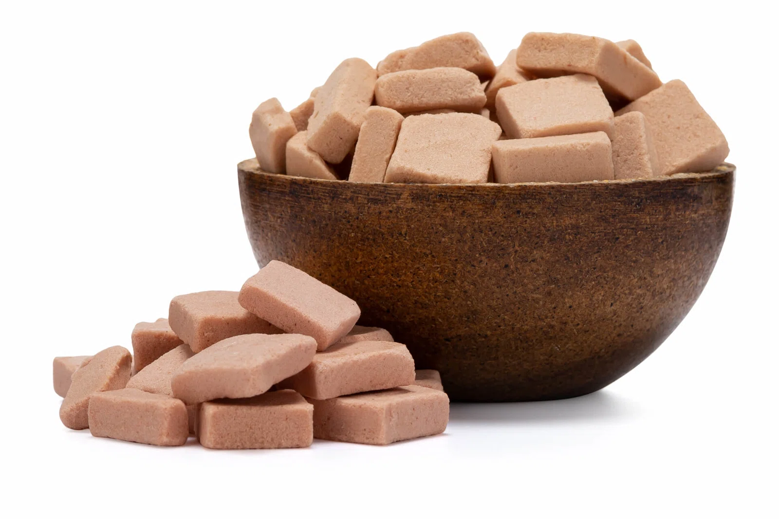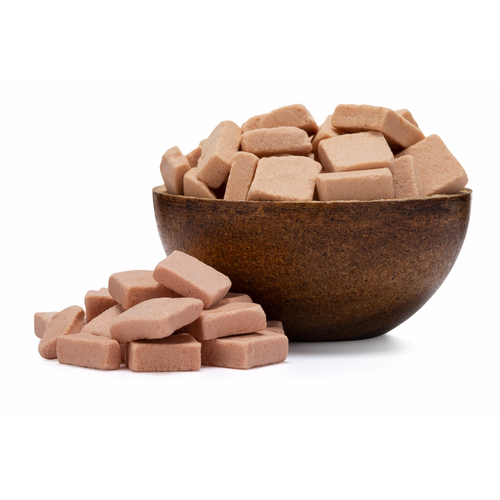 Liofilizowane kosteczki smoothie, które zawierają tylko owoce. Lekko słodka i chrupiąca przekąska.