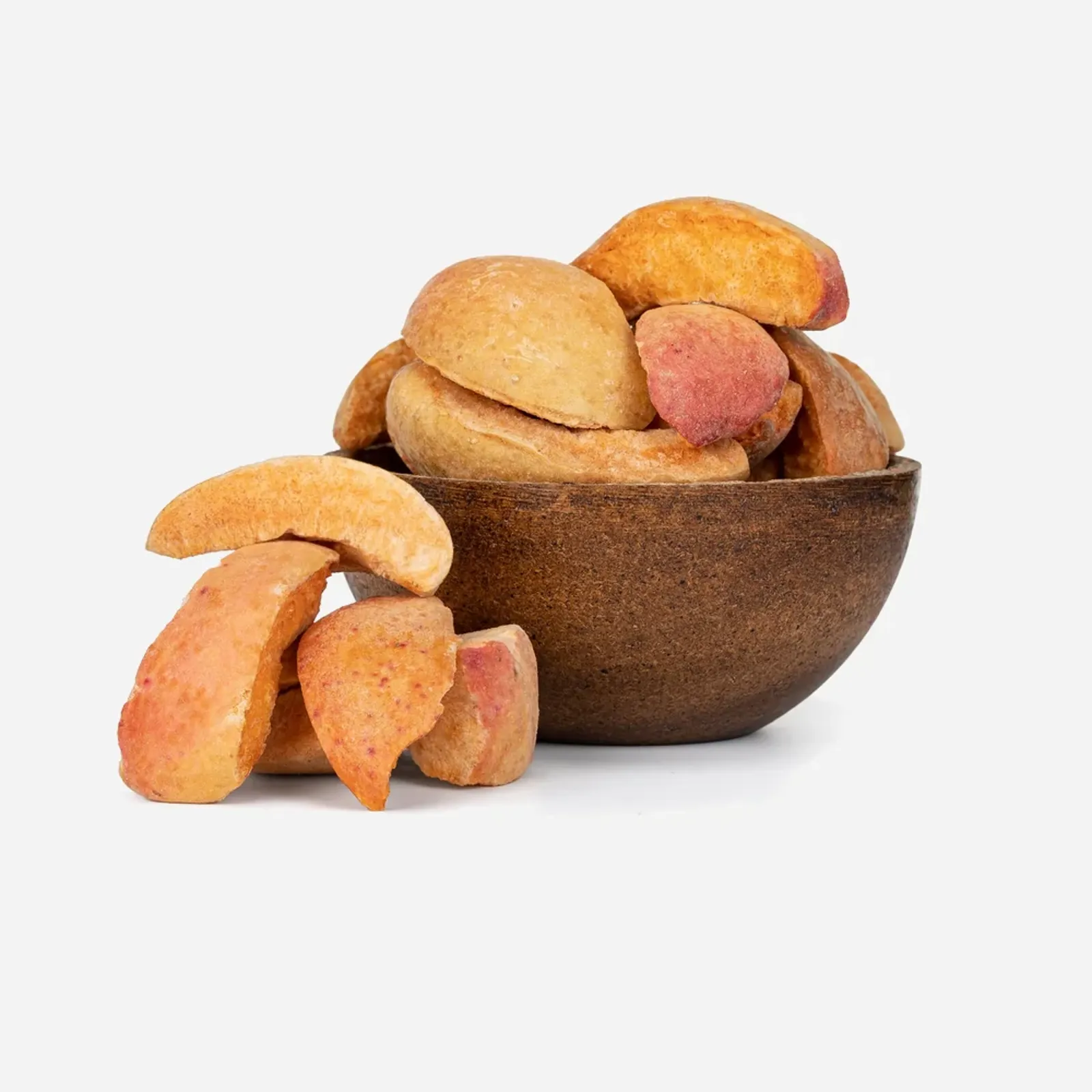 Liofilizowane morele to: 100% moreli, które zachowały kolor, kształt i smak świeżych moreli, bez dodatku stabilizatorów lub aromatów, do liofilizacji wybiera się tylko dojrzałe, świeże owoce.