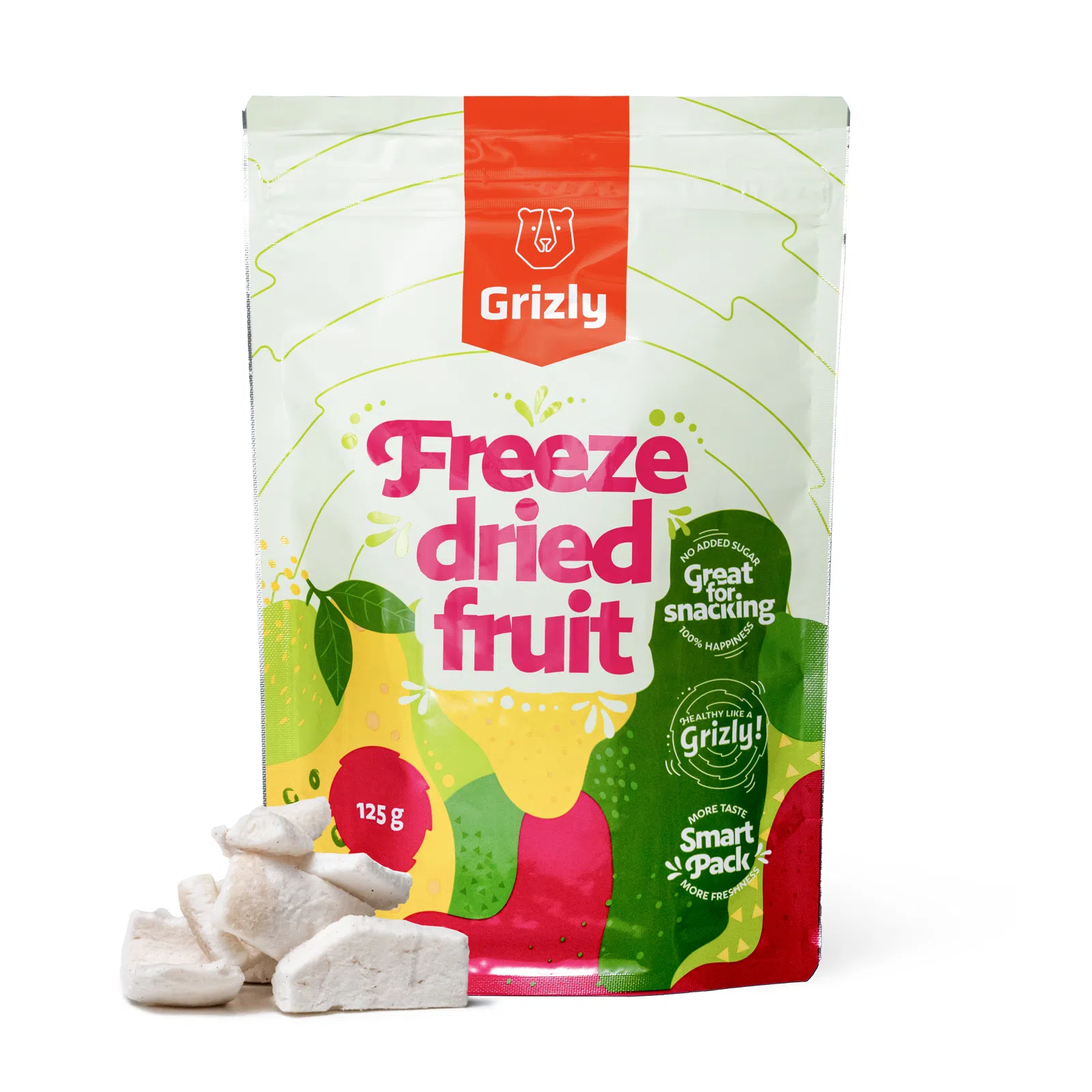 Jeśli należysz do prawdziwych miłośników kokosa, na pewno zgodzisz się z nami, że nigdy go za wiele, bez względu na formę. Tę liofilizowaną wersję warto spróbować jako pierwszą, bo to delikatne i chrupiące plastry, które dosłownie rozpływają się w ustach. Nie spodziewaj się twardej struktury, jaką mają niektóre suszone plastry kokosa. Te są suszone mrozem, dzięki czemu zachowały nie tylko autentyczny kokosowy smak, ale także niemal wszystkie wartości odżywcze, zdrowe tłuszcze i błonnik. Doskonale sprawdzą się jako szybka i zdrowa przekąska, ale możesz je także wykorzystać do pieczenia – jako ozdoba domowych ciasteczek lub tortów będą niezastąpione. Pasują też do granoli, owsianki lub jogurtu. Można je również zmielić na proszek i dodać do smoothie, koktajlu białkowego czy domowego mleka roślinnego.