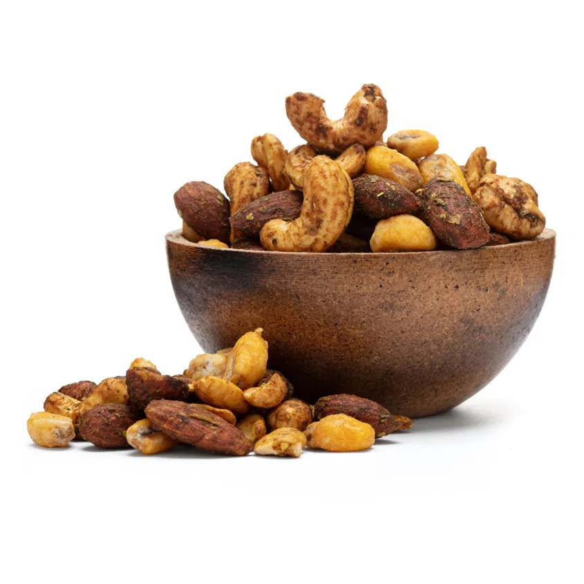 Wyjątkowa mieszanka smaków i aromatów zawiera orzeszki ziemne, migdały, orzechy nerkowca i prażoną kukurydzę. Niepowtarzalny aromat dodaje mieszanka orientalnych przypraw, szczypta cukru i soli. Oryginalny przysmak doskonały jako przekąska lub poczęstunek na imprezie z przyjaciółmi. Nie bój się używać go w kuchni do dekoracji już przygotowanych potraw.