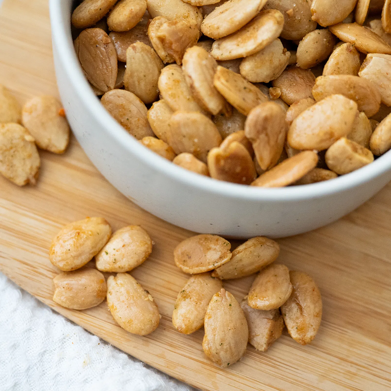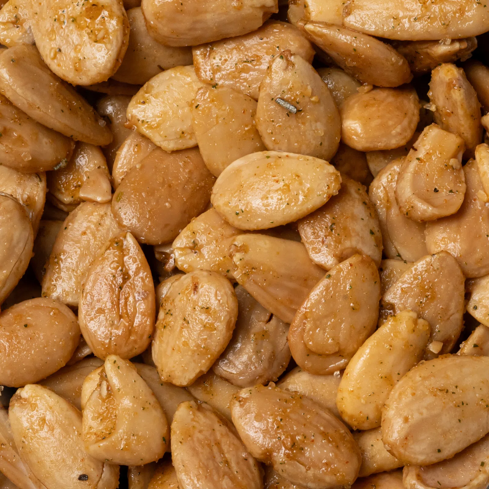 O tym, że czosnek, cebula i pomidory pasują do siebie, chyba nie trzeba długo dyskutować. Wszyscy się z tym zgadzamy. Co jednak może podzielić opinie, to pytanie, czy do tej kombinacji smaków pasuje również orzech? A tutaj mamy jasność – dla nas zdecydowanie tak! Dlatego nie wahaliśmy się ani chwili, kiedy pojawiła się możliwość przyniesienia Wam jedynych w swoim rodzaju smażonych migdałów z aromatem cebuli, czosnku i pomidora. Tak, dobrze czytacie, smażone migdały. Ale uwaga! W tym przypadku olej pełni tylko rolę nośnika smaku – orzechy najpierw się w nim obtaczają, a potem smażą. Powstaje z tego całkowicie doskonała chrupiąca przekąska, która czasami może zastąpić klasyczne chipsy w roli pierwszego wyboru na wieczorne chrupanie. Jeśli chcielibyście spróbować innych smaków smażonych orzechów, polecamy smażone migdały z papryką lub smażone nerkowce z ziołami.