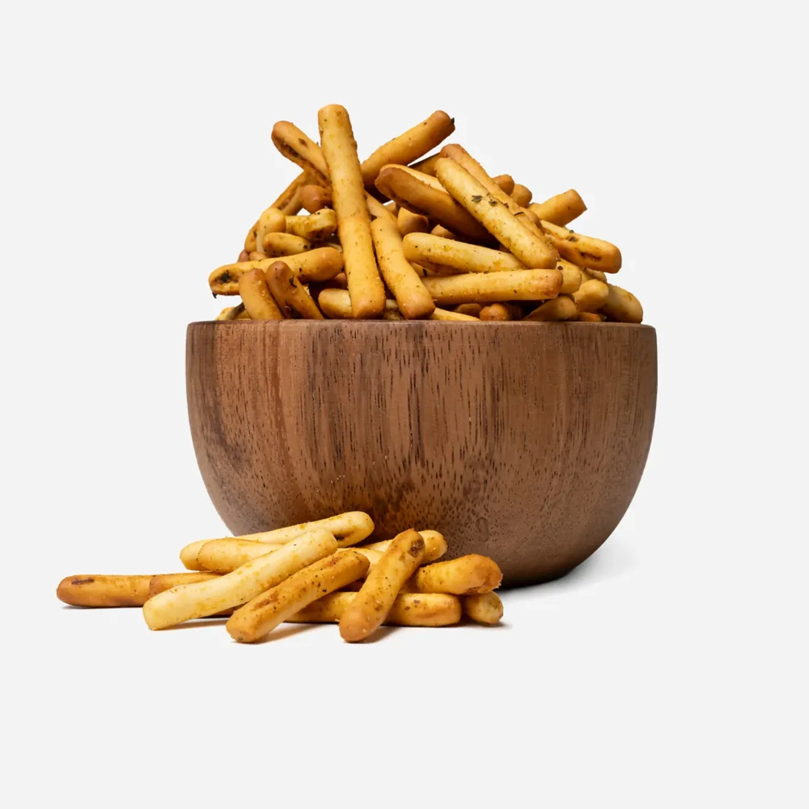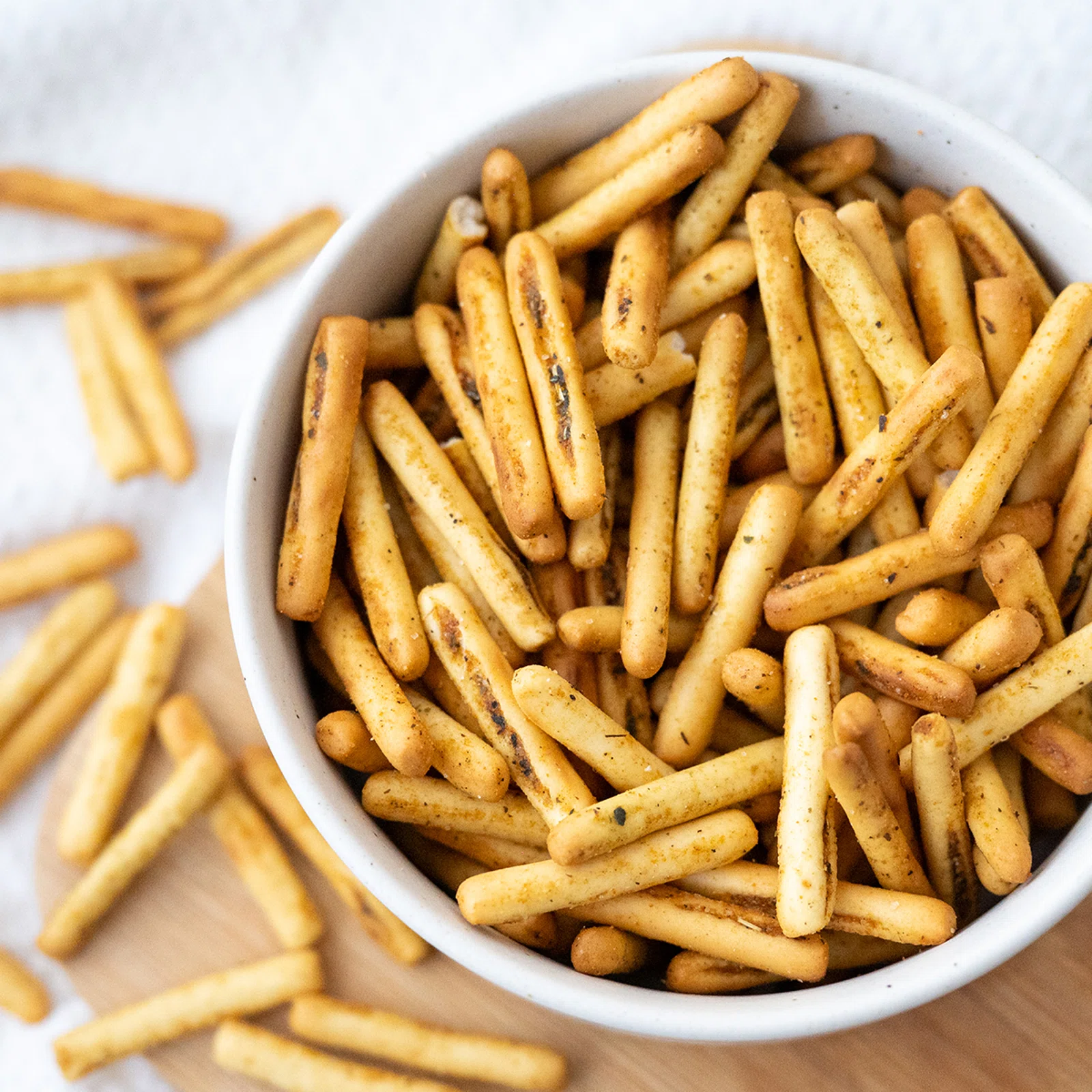 Kto kocha Włochy, nie waha się ani chwili! Te chrupiące mini grissini o smaku pizzy zachwycą cię niepowtarzalnym smakiem włoskich przypraw i oregano. To doskonały wybór, jeśli nagle masz ochotę na coś słonego lub jeśli odwiedzają cię znajomi. Gdy tylko postawisz mini grissini na stole, znikną w mgnieniu oka. Oprócz smaku pizza, w naszym e-sklepie znajdziesz także wersję bazylia i czosnek. Jeśli chcesz spróbować również czegoś egzotycznego, dorzuć do koszyka mieszankę azjatycką.