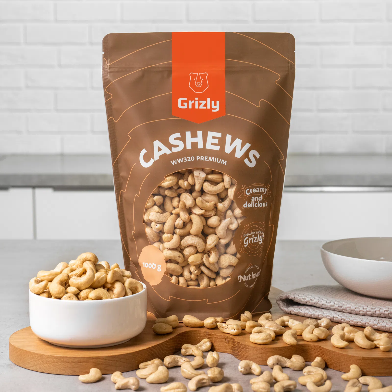 Kremowy, lekko słodki przysmak pełen białka, błonnika i witaminy K. Oznaczenie ww320 gwarantuje najwyższą jakość orzechów nerkowca.