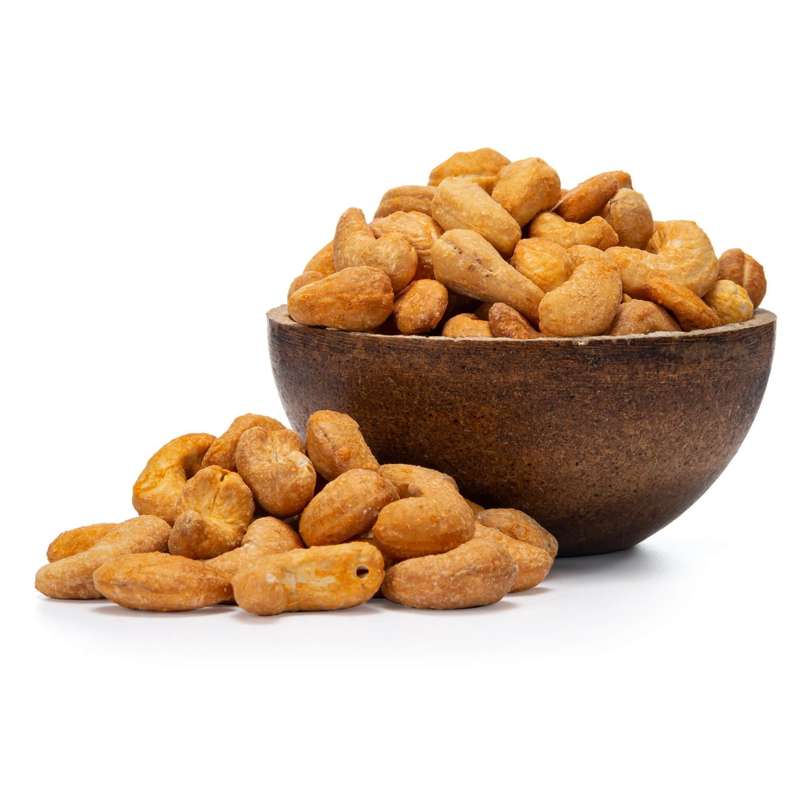 Ostrzejsza wersja solonych orzechów nerkowca, która ma odpowiednią pikantność. Doskonała jako przekąska do wina, piwa lub gdy masz ochotę na coś pikantnego.