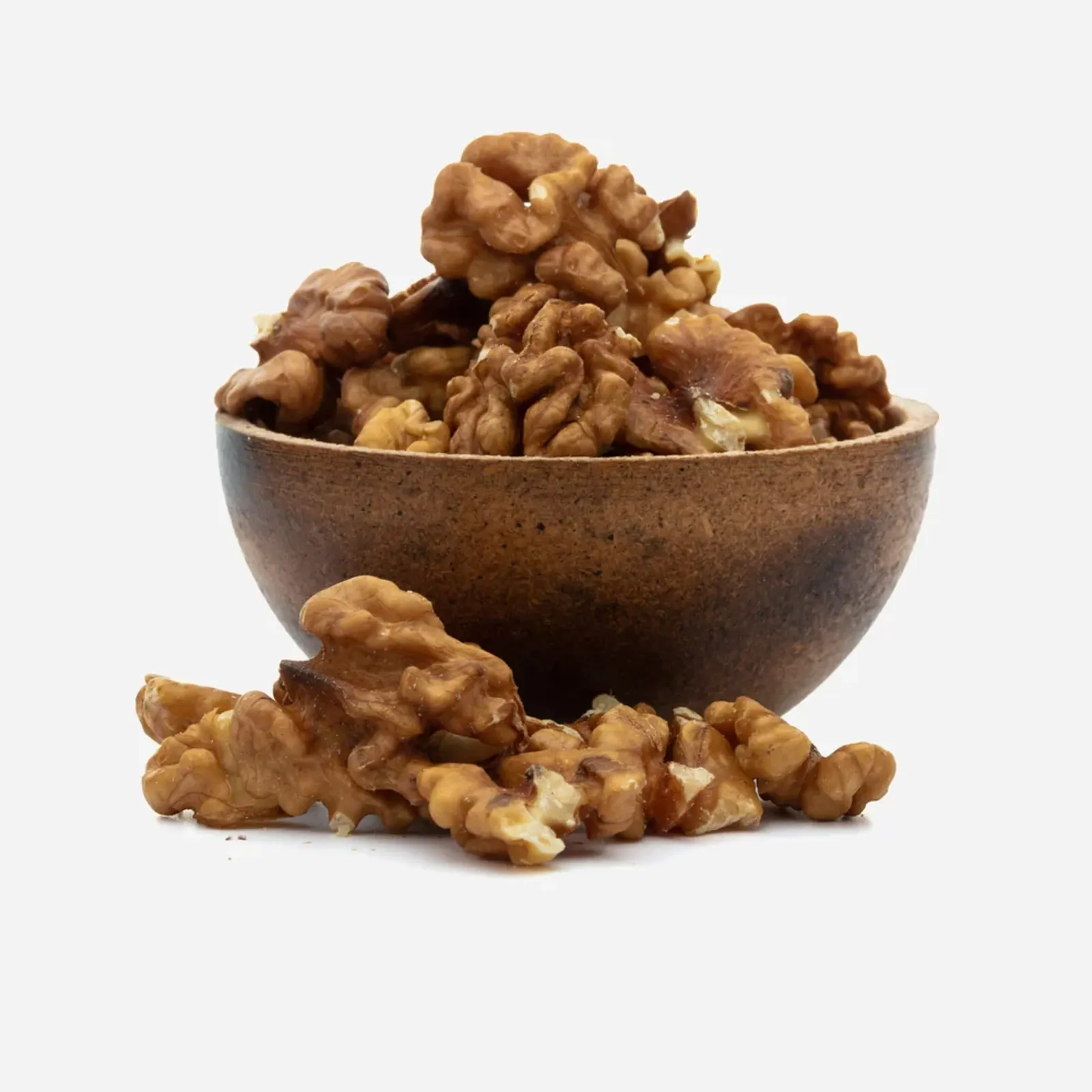 Orzechy włoskie są już obrane, dzięki czemu zawsze możesz mieć je pod ręką i sięgnąć po nie na szybką przekąskę. 60% zawartości to całe połówki, które świetnie nadają się do dekoracji domowych deserów lub do domowej granoli. Mniejsze kawałki możesz posypać poranną owsiankę lub użyć jako dodatek do sałatek warzywnych i owocowych. Jeśli lubisz piec, mielone orzechy włoskie są doskonałym dodatkiem do słodkich ciast, a także jako nadzienie do bułeczek, rolad czy strudli. A jeśli chcesz zaoszczędzić czas, oferujemy także drobno zmieloną mąkę z orzechów włoskich.