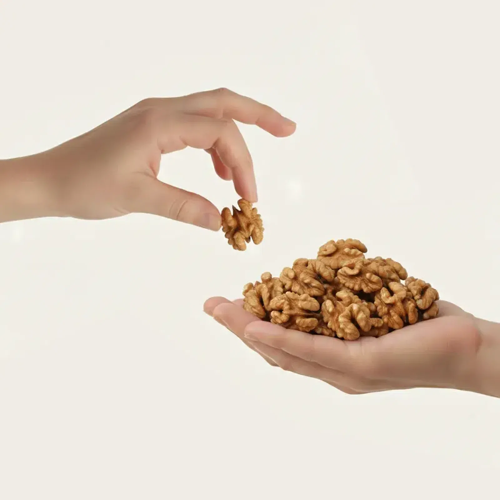Orzechy włoskie to absolutna podstawa każdej spiżarni. W naszym opakowaniu nie znajdziesz żadnej kruszonki, tylko solidne, pięknie jasne połówki o delikatnym, maślanym smaku. Są świeżo łuskane, chrupiące i pozbawione gorzkiego posmaku. Idealne do pieczenia i codziennego podjadania.