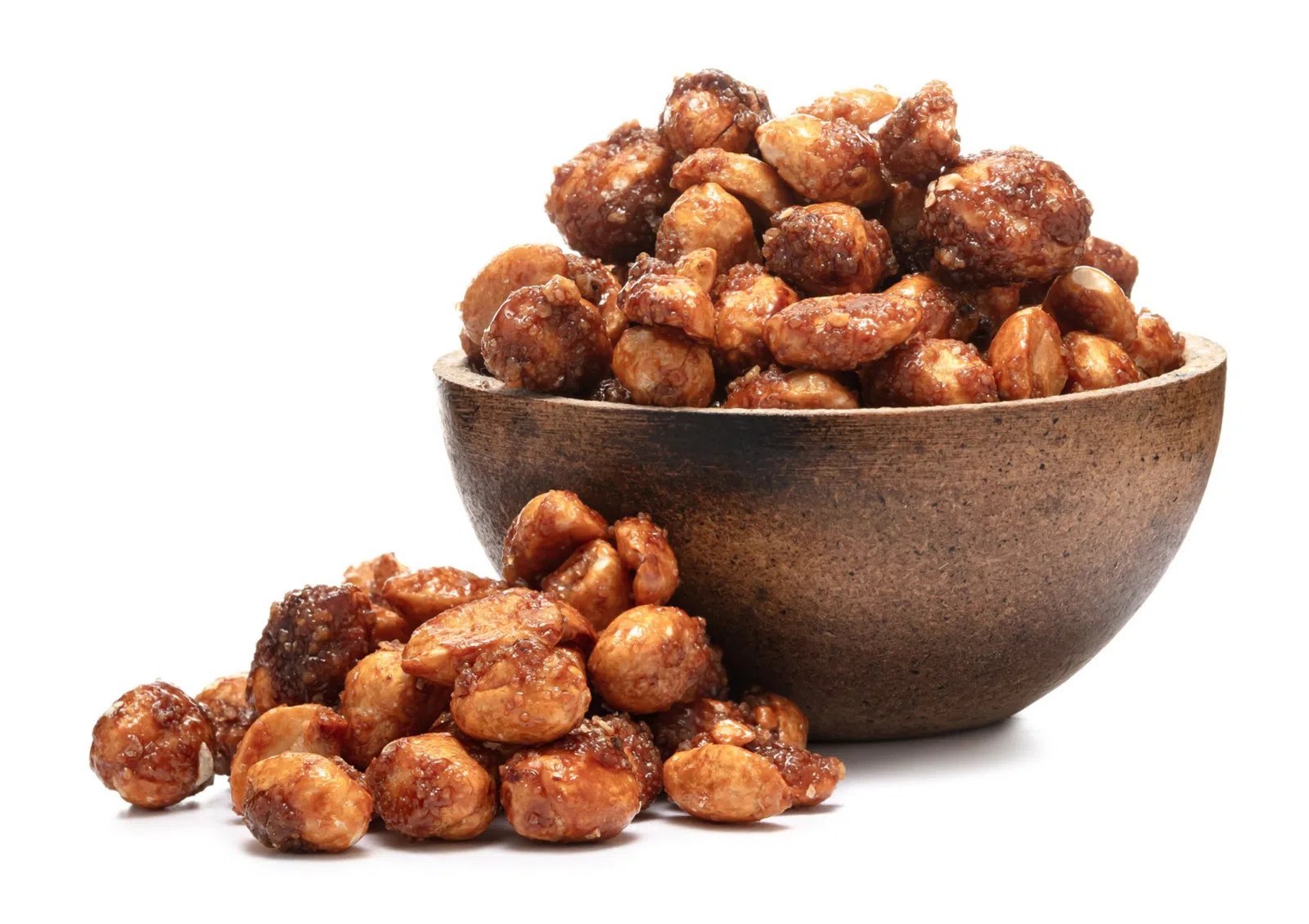 Pyszne orzeszki ziemne prażone w cukrze i miodzie ze szczyptą soli morskiej smakują jak solony karmel, a jednocześnie zawierają dużo błonnika, zdrowych tłuszczy i białka.