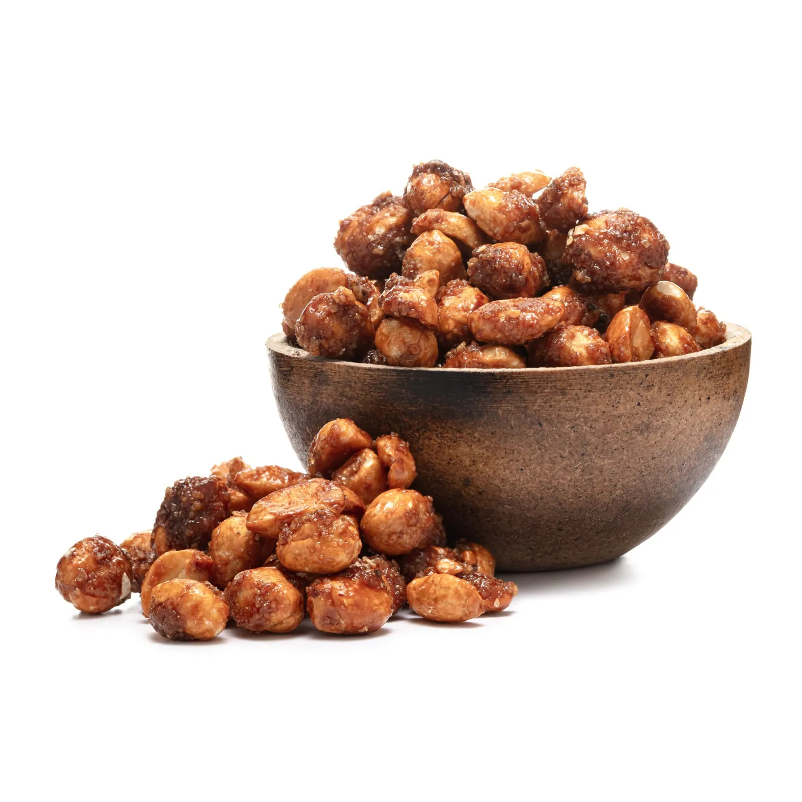 Cechy i zalety: Pyszne orzeszki ziemne prażone w cukrze i miodzie z solą mają kuszący smak solonego karmelu. Orzeszki ziemne są klasyfikowane jako orzechy, mimo że w rzeczywistości są roślinami strączkowymi z botanicznego punktu widzenia. Orzeszki ziemne są bogate w białko, błonnik, zdrowe tłuszcze, witaminy (witaminy E i B) oraz minerały (magnez, miedź, mangan i fosfor).