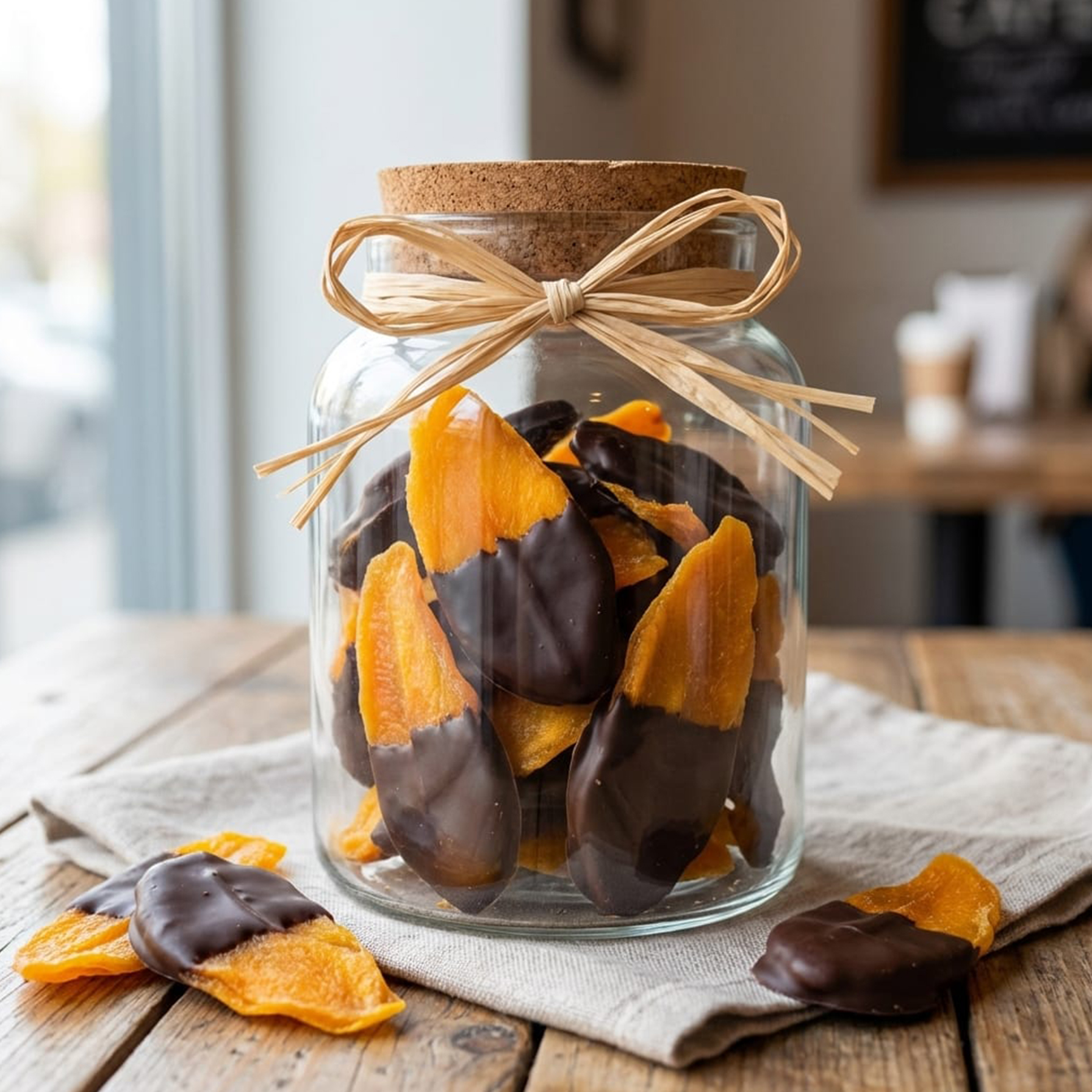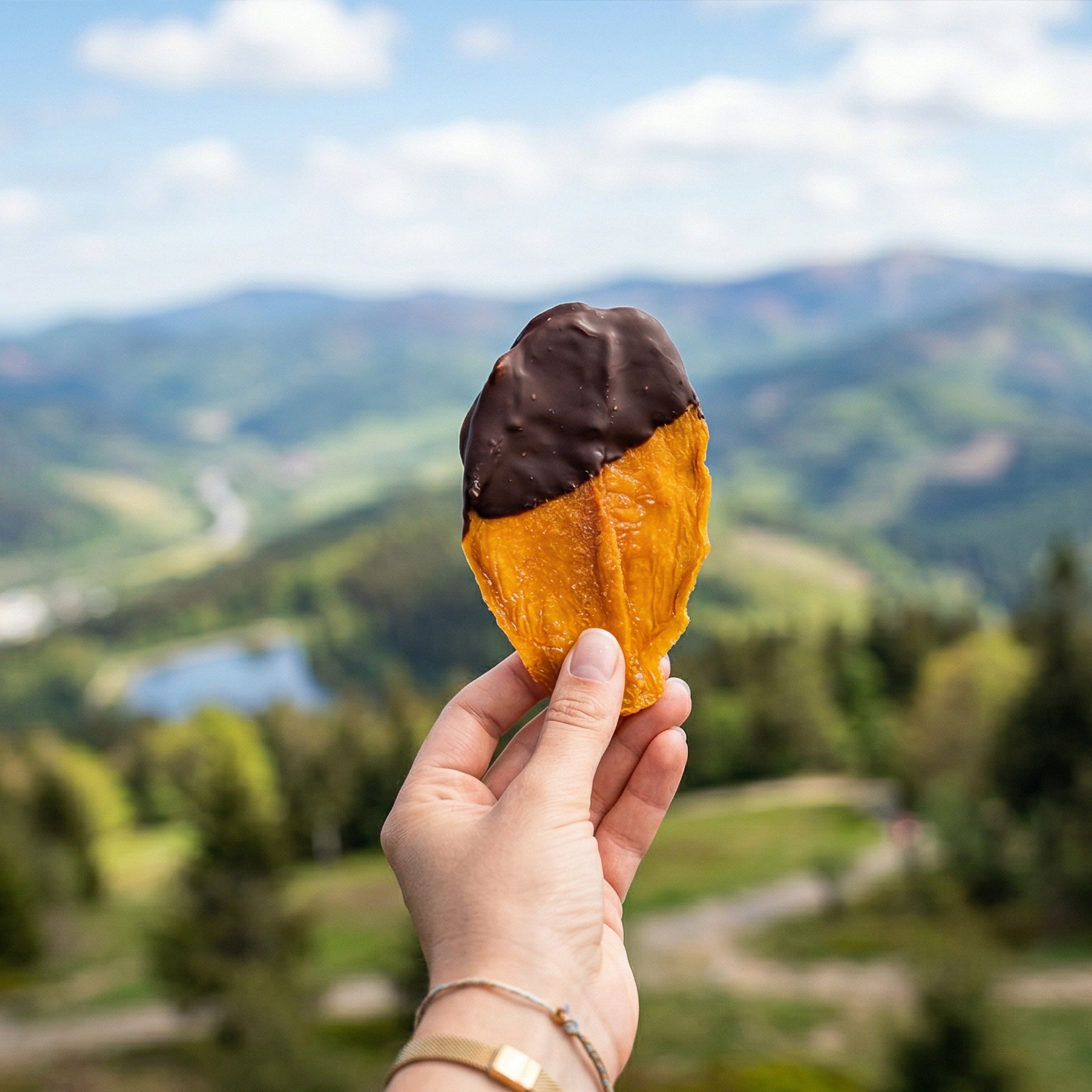 Rozkoszuj się soczystym suszonym mango, w połowie zanurzonym w wysokiej jakości gorzkiej czekoladzie. To idealne połączenie egzotycznej słodko-kwaśnej nuty i intensywnego kakaowego smaku. Świetnie sprawdzi się jako szybka przekąska do pracy, mała nagroda po wymagającym dniu lub stylowy poczęstunek dla gości. Uwaga – znika szybciej, niż się spodziewasz.