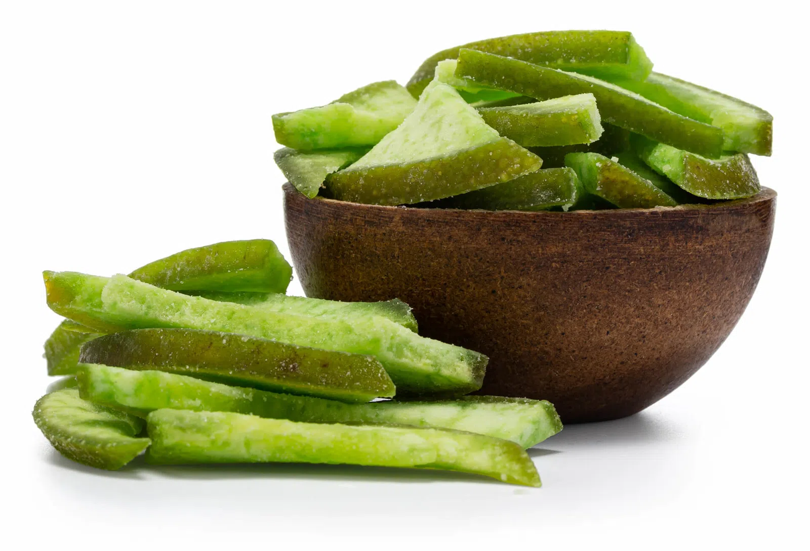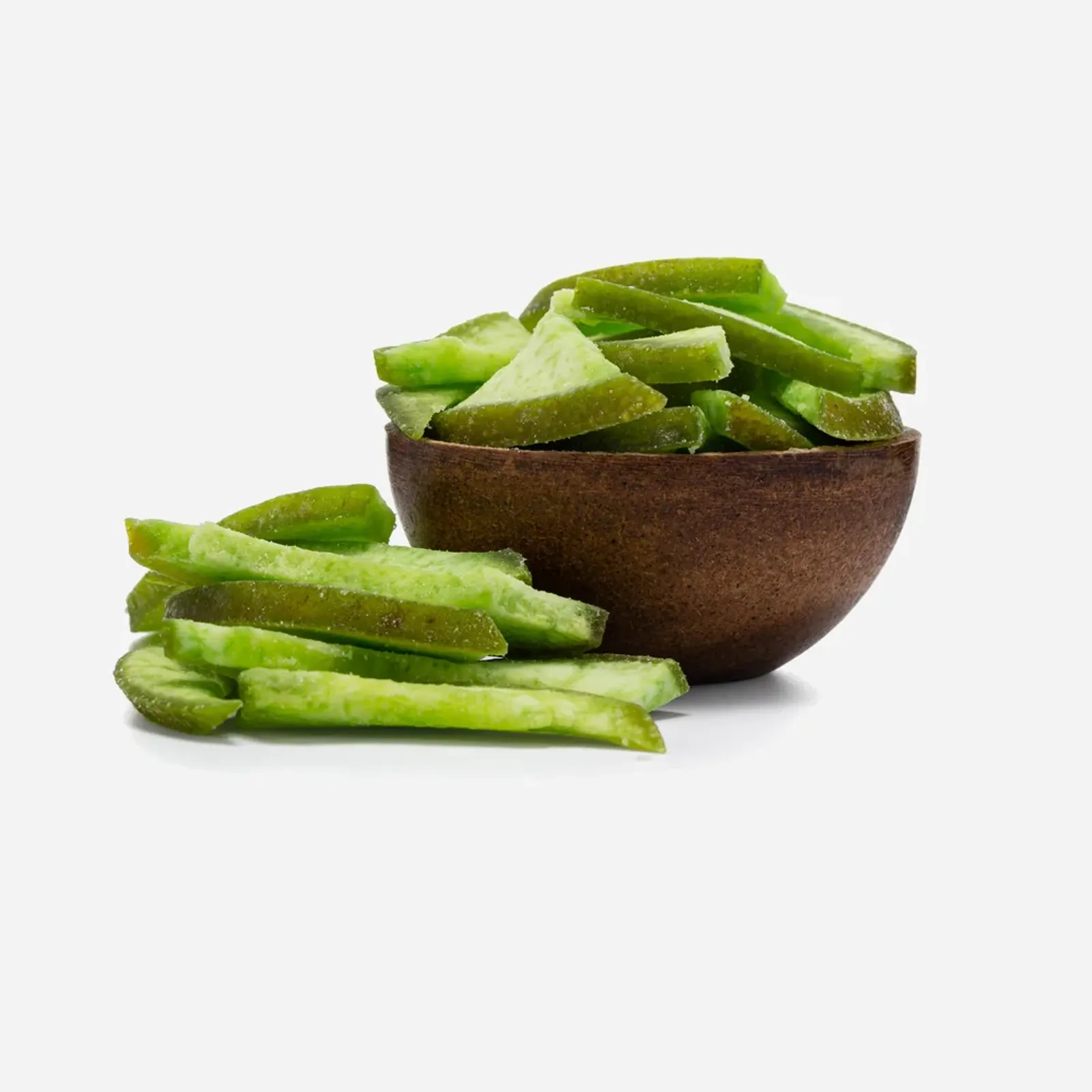Jeśli lubisz egzotyczne owoce, nie wahaj się i wypróbuj nasze cienkie plasterki suszonego pomelo. Zaskoczy cię przyjemnym, delikatnie cytrusowym aromatem. Należy jednak pamiętać, że w dużej mierze jest to skórka pomelo.