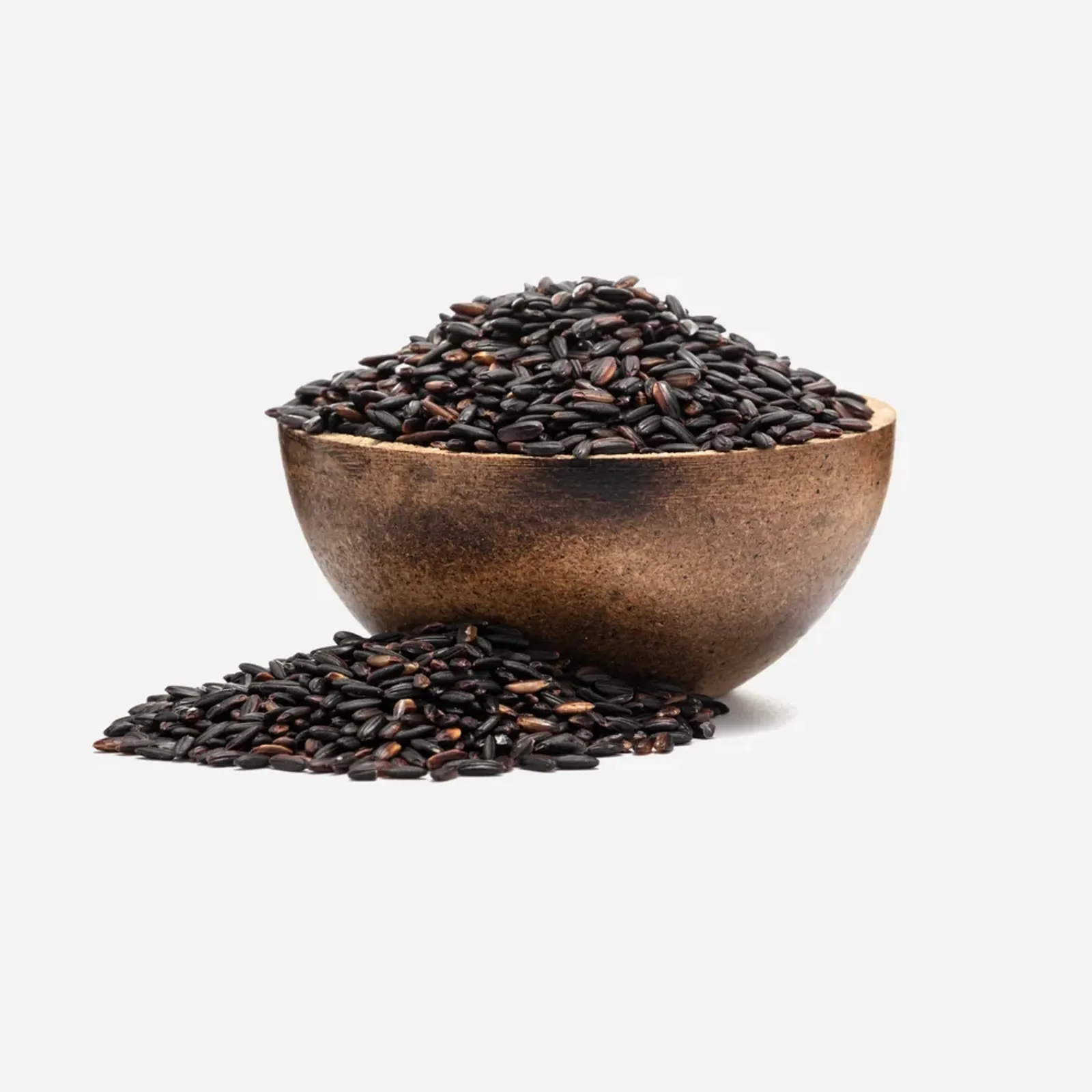 Cechy i zalety: Czarny ryż jest uprawiany głównie w Tybecie. Należy do mniej znanych gatunków w naszym kraju i uważany jest za dość szczególny. Jednocześnie jest bardzo smaczny, a dodatkowo posiada znaczące właściwości odżywcze. W porównaniu z odmianami białymi zawiera dwukrotnie więcej białka, a także ma bardzo niski indeks glikemiczny. Podobnie jak inne rodzaje ryżu, nie zawiera glutenu, jest bardzo pożywny i lekkostrawny. Jest źródłem przeciwutleniaczy, aminokwasów egzogennych oraz szerokiej gamy witamin (zwłaszcza z grupy B i E) oraz minerałów.