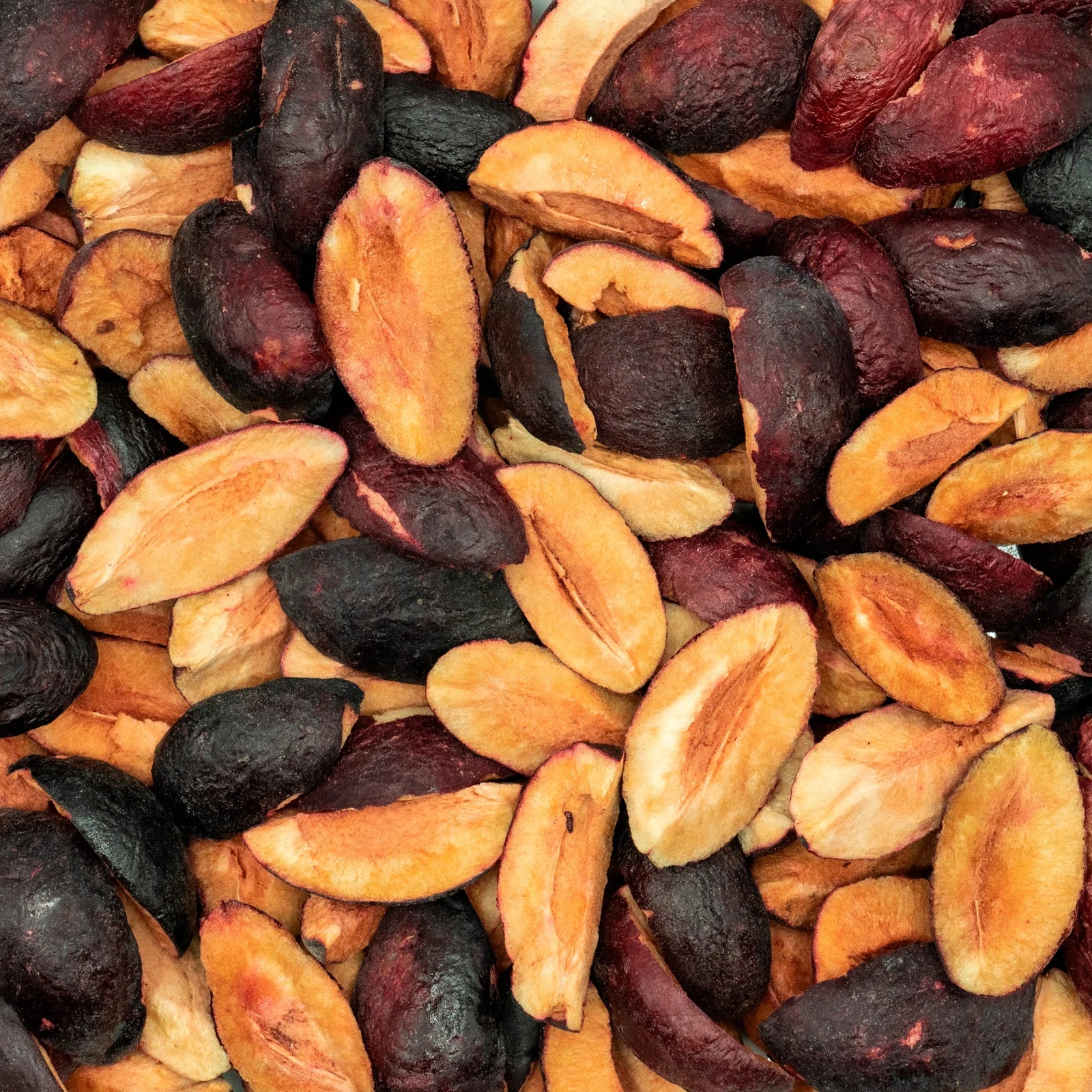 Liofilizowane śliwki są produkowane z całych, dojrzałych, starannie wyselekcjonowanych owoców. Przyjemnie chrupią i świetnie smakują. Można je wykorzystać do pieczenia i gotowania. Śliwki są bogate w witaminy, minerały i błonnik. Zawierają również sorbitol, który działa w jelitach podobnie jak błonnik. Pektyny spowalniają wchłanianie cukrów i zwiększają spalanie tłuszczu.