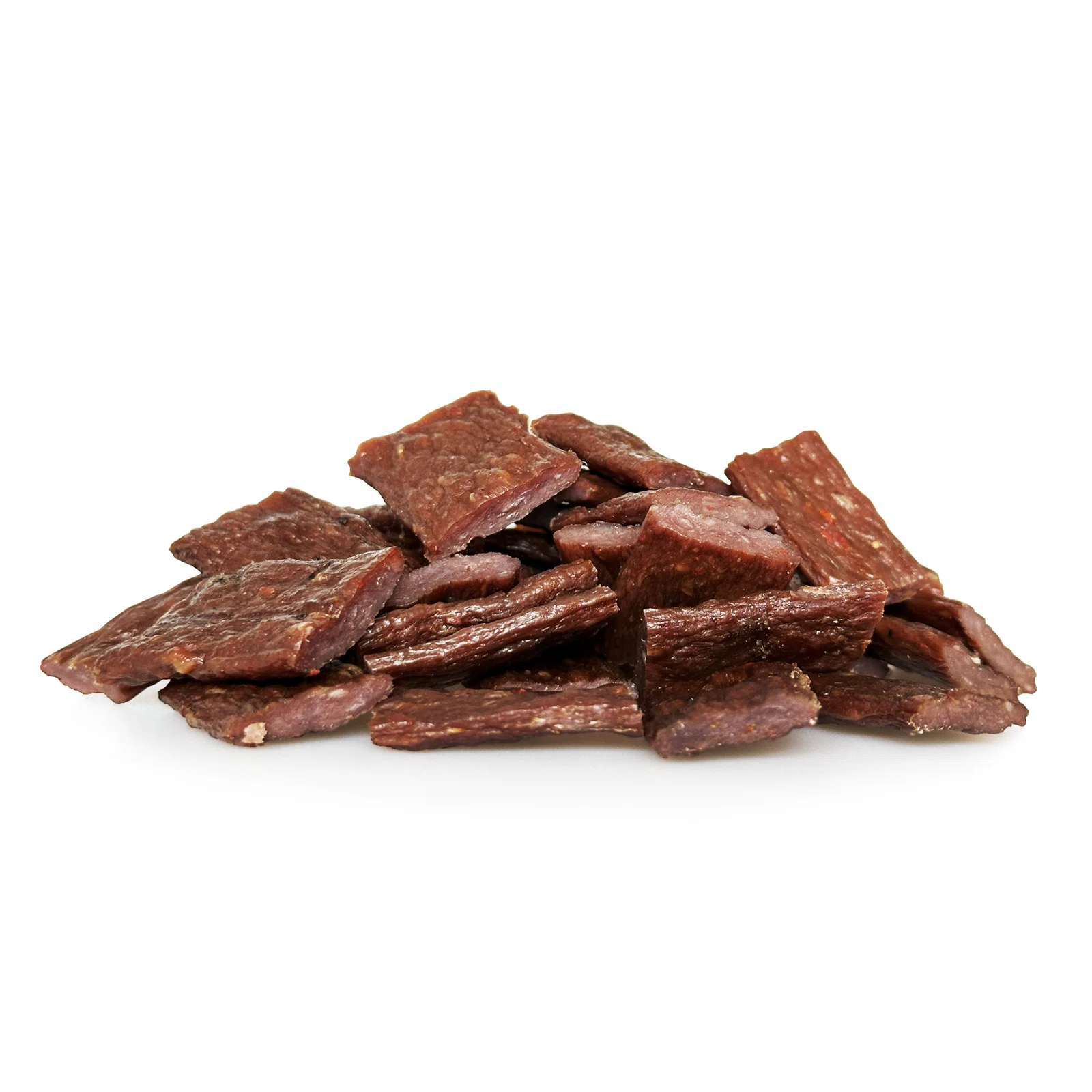 Pięknie pachnące suszone mięso z chilli kusi już od pierwszego kęsa! Nic dziwnego, skoro do jego konserwacji używa się wyłącznie dymu z drewna dębowego, nie znajdziesz w nim żadnych chemicznych konserwantów. Pochodzi z Czech, a dokładnie z Gór Doupowskich, gdzie na pastwiskach wypasane są młode byki, z których pochodzi mięso. Jednym z głównych powodów, dla których warto włączyć suszone mięso do swojej diety, jest wysoka zawartość białka. W 100 g suszonego mięsa znajdziesz aż 56 g białka. To sprawia, że jest to idealna szybka przekąska, szczególnie podczas wycieczek pieszych czy wędrówek. Oprócz ostrej wersji chilli można sięgnąć po tradycyjną wołowinę oryginalną lub delikatniejszy wariant z pieprzem.