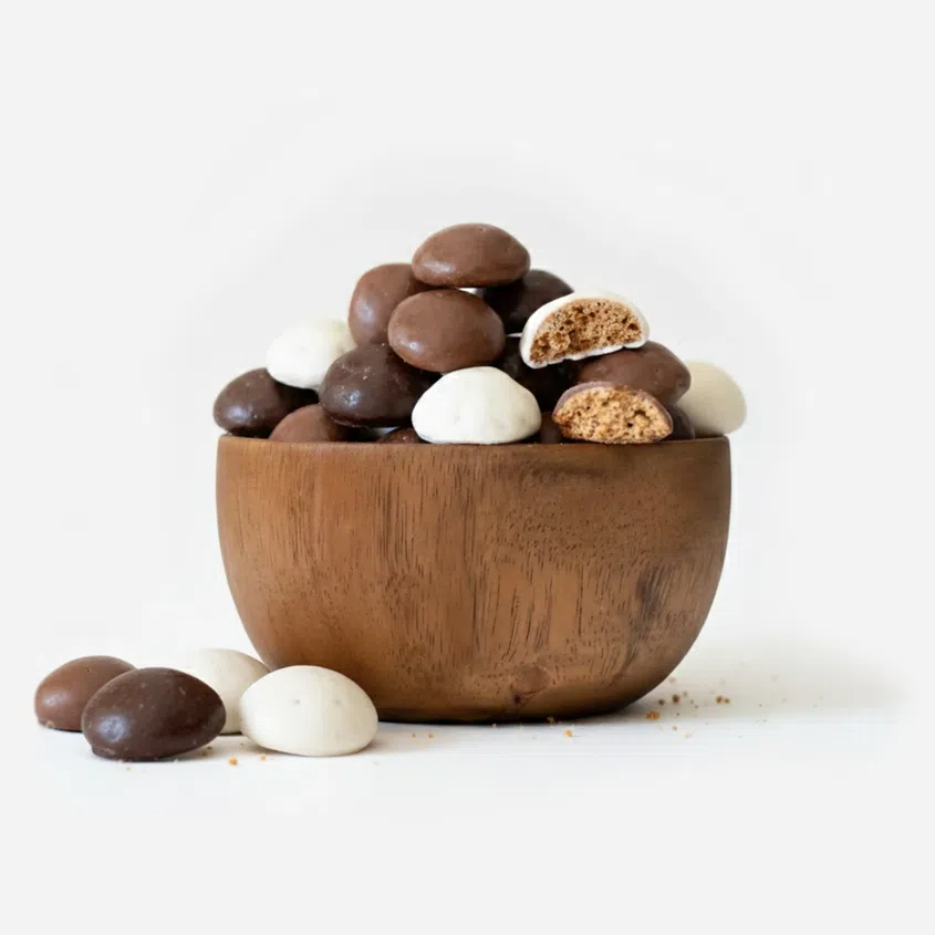 Trójkolorowe ciasteczka w czekoladzie zachwycą każdego miłośnika słodkich przysmaków z nutą tradycji. Chrupiące piernikowe ciasteczka oblaliśmy trzema rodzajami wysokiej jakości czekolady – mleczną, gorzką i białą, aby każdy, kto ceni połączenie korzennego smaku z delikatną słodyczą, znalazł coś dla siebie.