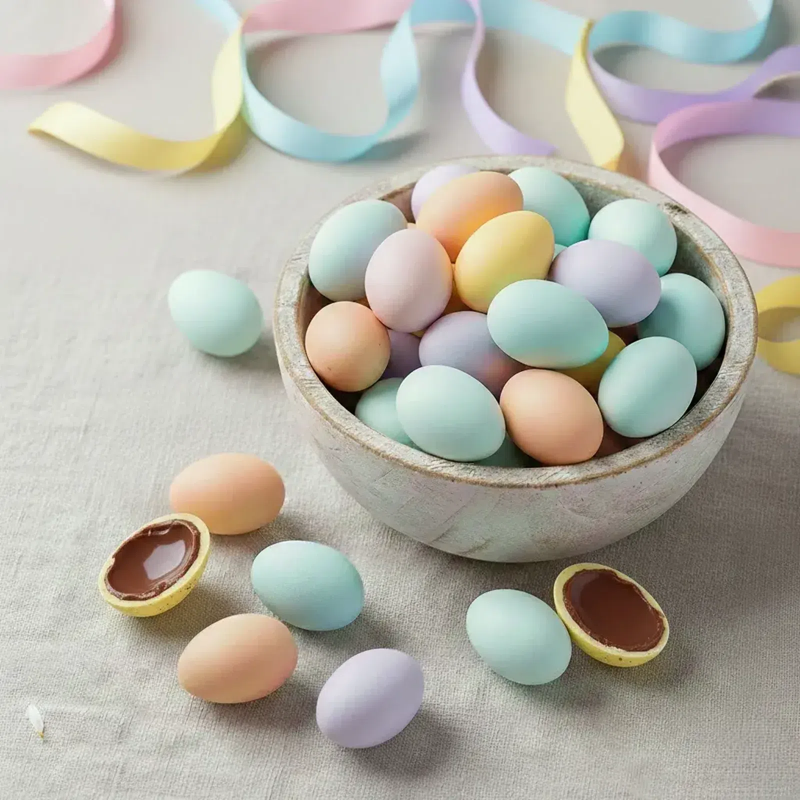 Wielkanocna klasyka, która nigdy nie zawodzi. Kolorowe czekoladowe jajeczka z chrupiącą cukrową otoczką skrywają delikatne, aksamitne czekoladowe nadzienie, które rozpływa się w ustach. Idealne do wielkanocnego koszyczka dla kolędników, na świąteczny stół lub po prostu do wiosennego podjadania w domu.