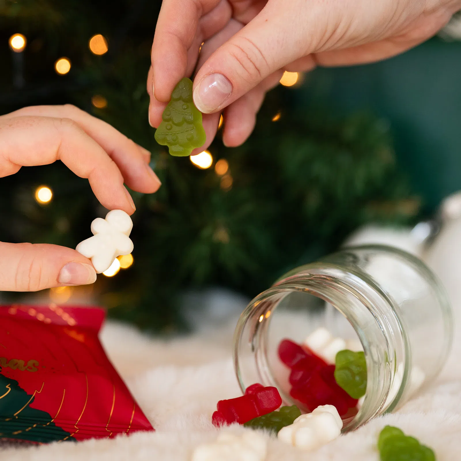 Zimą, jak wiadomo, szybko zapada zmrok. I co wtedy zrobić z wieczorem, którego przez ciemność nie spędzicie już na zewnątrz? Wykorzystajcie go na relaks – w jednej ręce książka, w drugiej miseczka naszego zimowego mixu. Poza tym, że mix ma świetny, owocowy smak, potrafi w mgnieniu oka wyczarować świąteczną atmosferę, bo poszczególne kawałki żelków mają kształt pierniczków, choinek i dzwoneczków. Magiczny jest też ich skład – nie znajdziecie w nim oleju palmowego, sztucznych barwników ani aromatów.