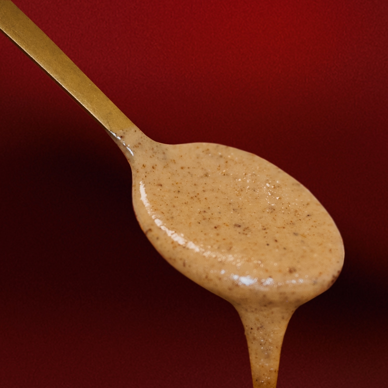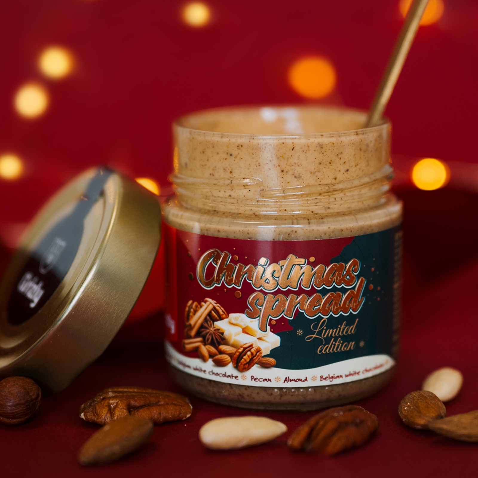 Tę świąteczną limitkę przygotowaliśmy wyłącznie z sucho prażonych orzechów laskowych, prażonych migdałów, znakomitej belgijskiej czekolady karmelowej i prażonych orzechów pekan. Dodaliśmy odrobinę przyprawy piernikowej i powstał fenomenalny świąteczny krem, który smakuje jak Święta!