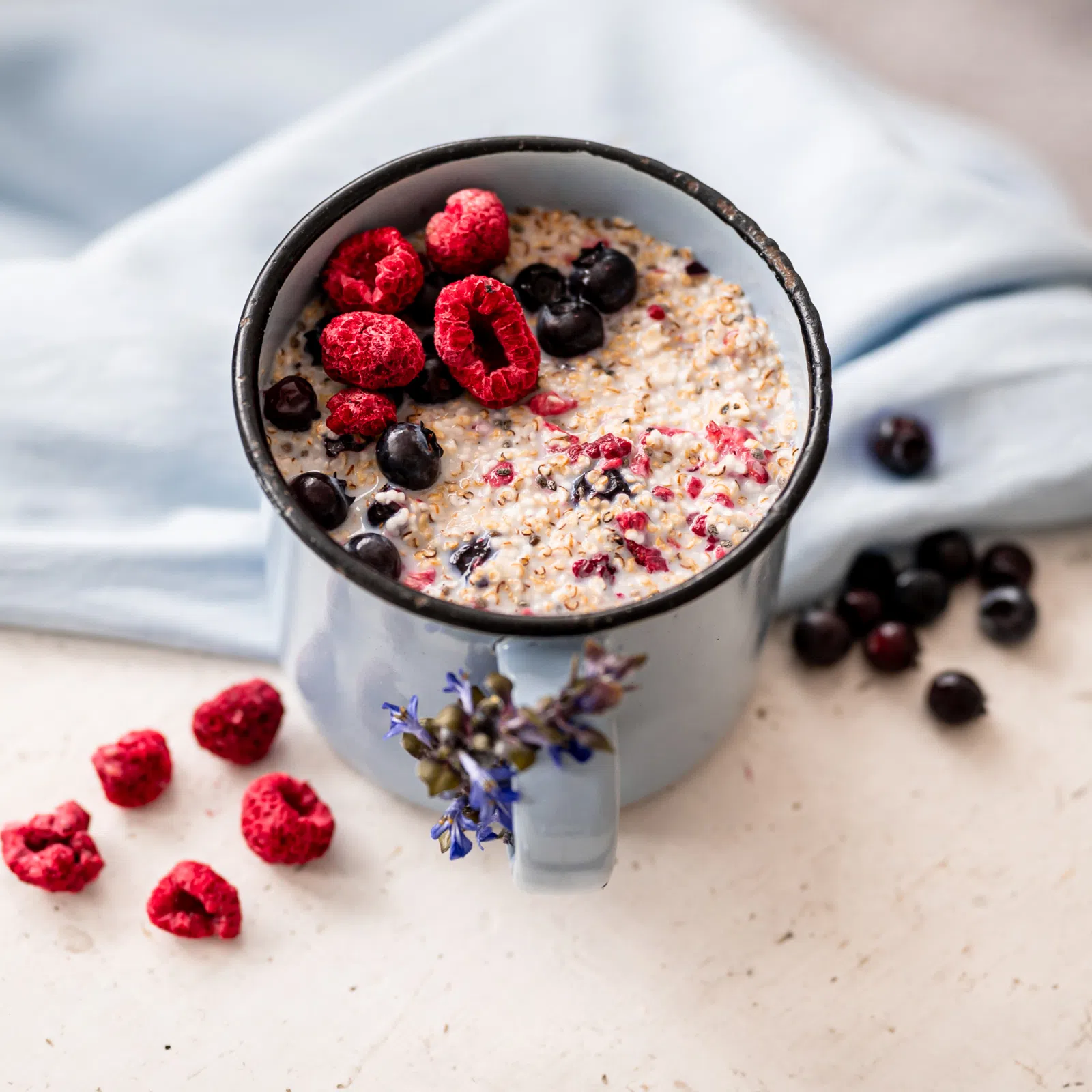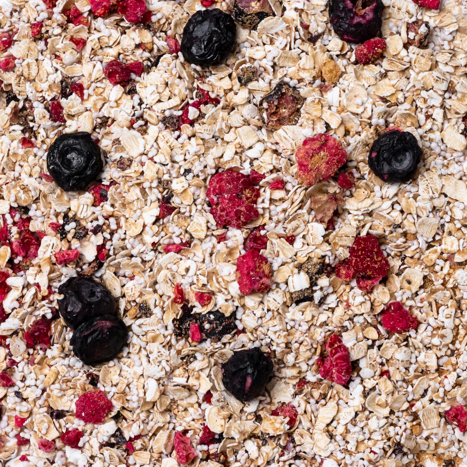 Jak zawsze – z samego dobra! Fragmenty liofilizowanych borówek i malin uzupełniają bezglutenowe płatki owsiane z kiełkami, które w porównaniu z niezakiełkowanym ziarnem są o wiele łatwiejsze do strawienia. W składzie owsianki znajdują się także nasiona chia, ekspandowany amarantus i suszony sok trzcinowy.
