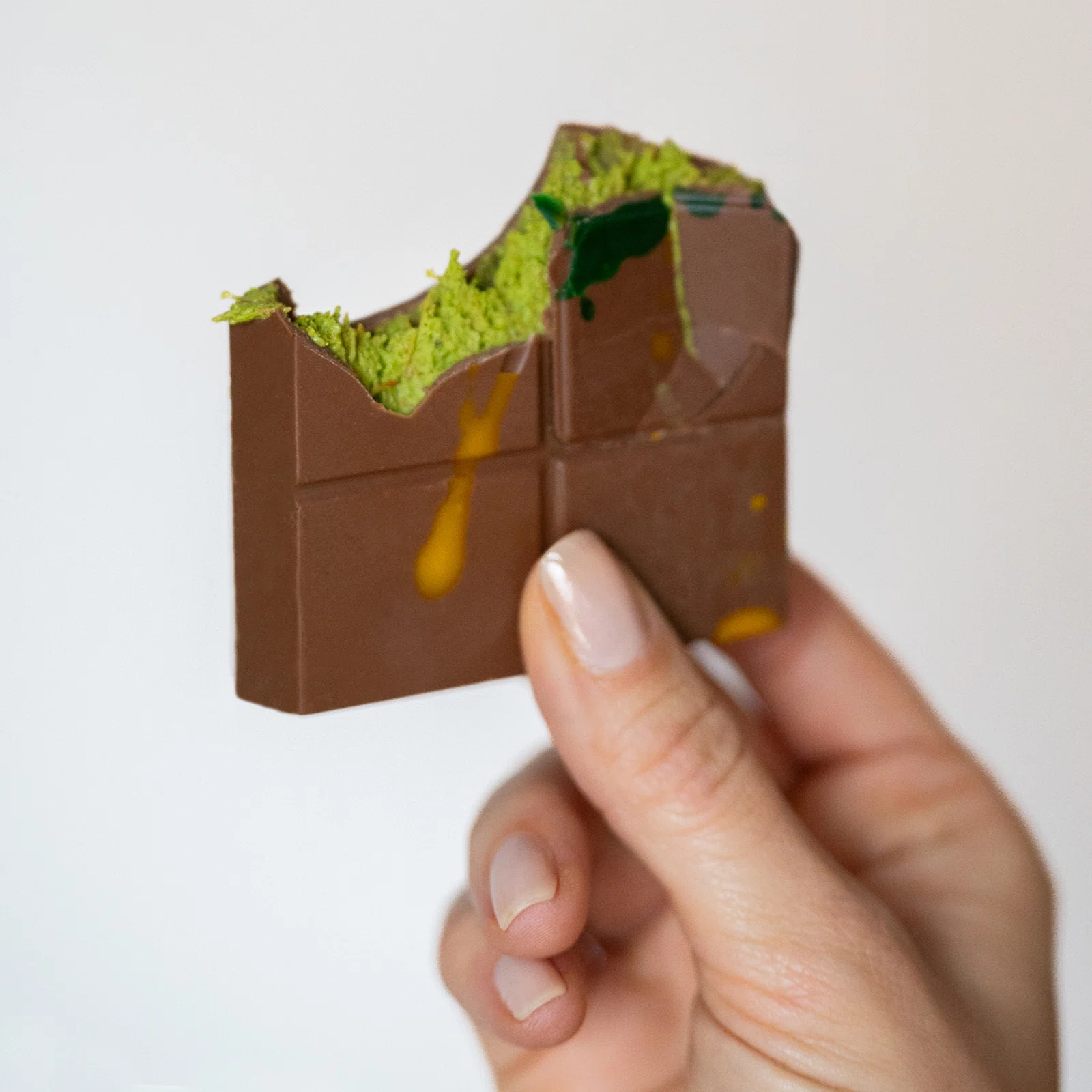 - nadzienie kunafa: bogaty smak pistacji w połączeniu z czekoladą i charakterystycznym chrupnięciem